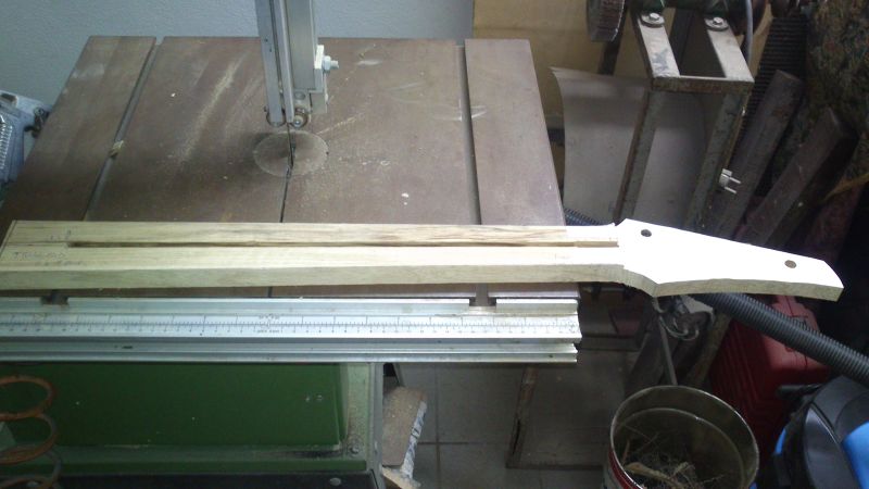 Con questa e con il disegno riportato precedentemente passo al taglio del profilo, lasciando un paio di mm in più per parte lungo il manico.