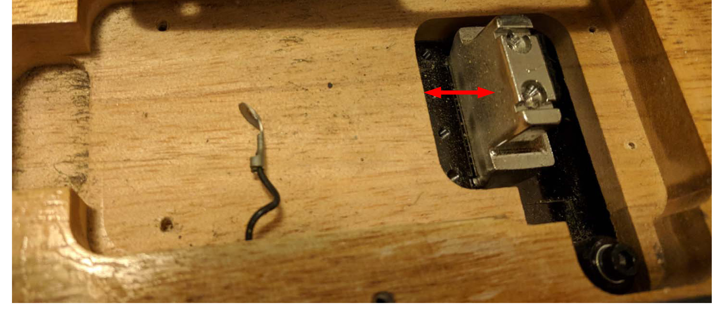- Aprendo il coperchio di plastica retrostante del vano molle, si misura con un calibro preferibilmente digitale l'esatta misura tra il legno e il blocco perpendicolare del tremolo: