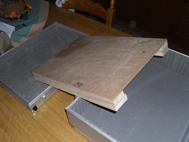 Dentro, ho gia fatto il ripiano per portare a piano i pedali,altrimenti era scomodo schiacciarli, per via dei bordi. sotto al ripiano, gli ho lasciato un vuoto, dove poi passeranno tutti gli eventuali cablaggi che dovro' andare a fare. Io avevo intenzioni di metterci a pannello,due jack, ossia output ed input, della pedaliera, e un connettore per la corrente. Sotto, poi non saranno a vista i relativi cablaggi per ogni singolo pedale, percio' verranno fatti i buchi per come mi serviranno, vicino ogni pedale e vedro' di fare un lavoro piu' pulito possibile. Anche se penso che per comodita' sotto passeranno solo i cavi corrente, e sopra i jack. Vedremo...