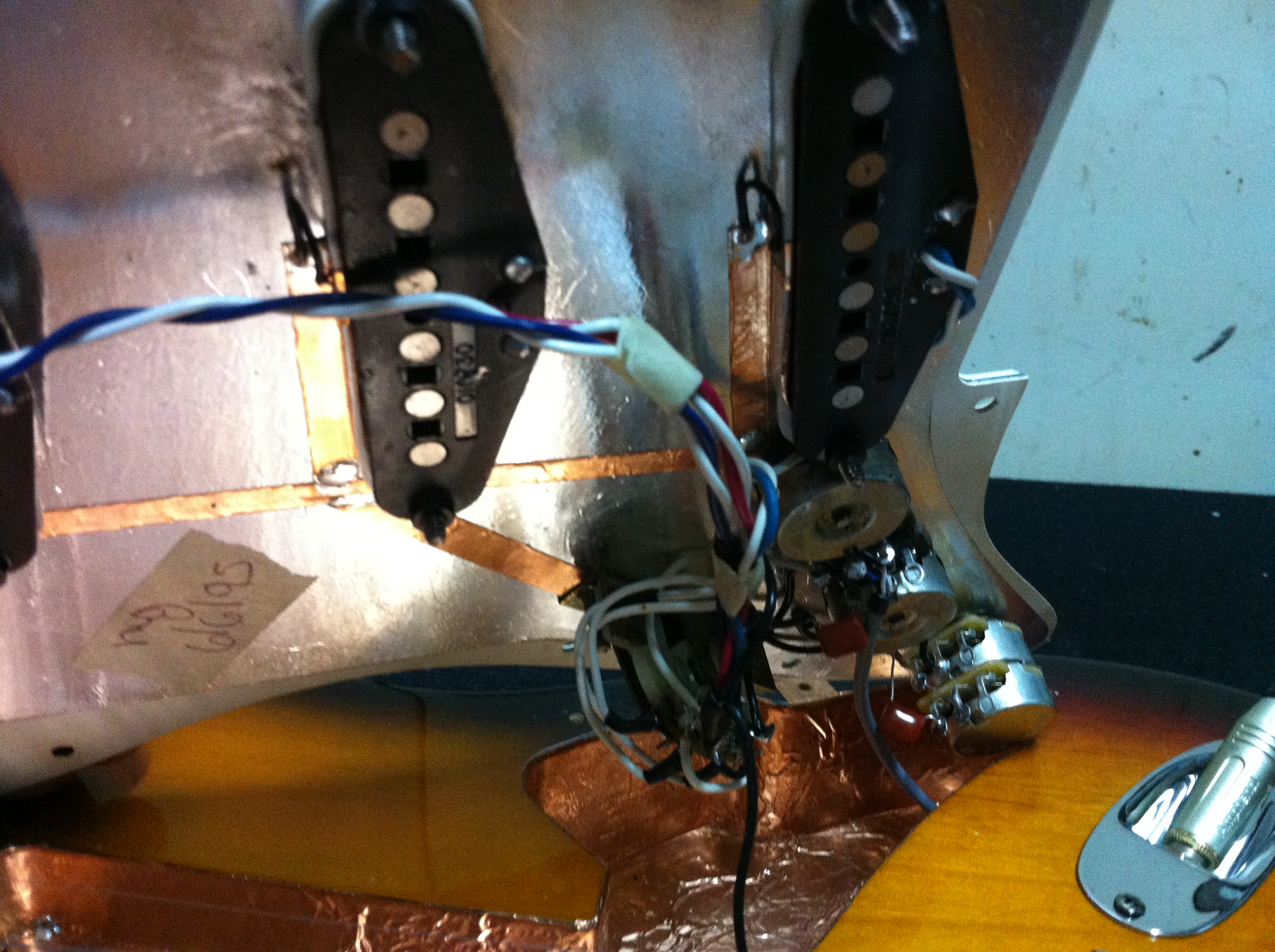 e ho schermato anche le plastiche dei pickup, collegando il rame con la schermatura..
