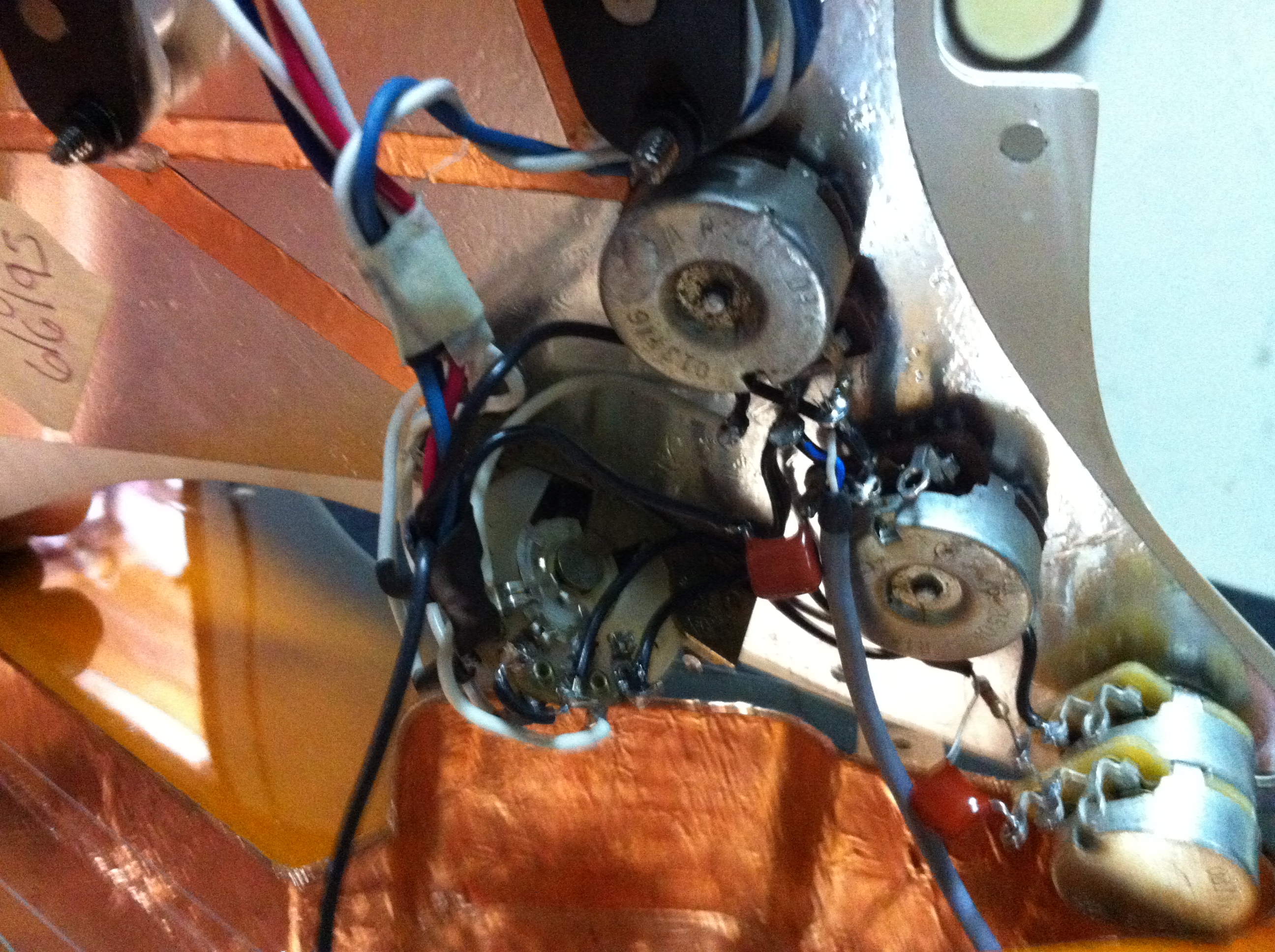 l'effetto finale è che un po di ronza dei singoli c'è, ma c'è anche il problema toccando la chitarra in qualunque punto si sente nell'ampli.. se appoggio la mano sui pot, o sento fortissimo il tac tac dello switch che scorre.. ecc..