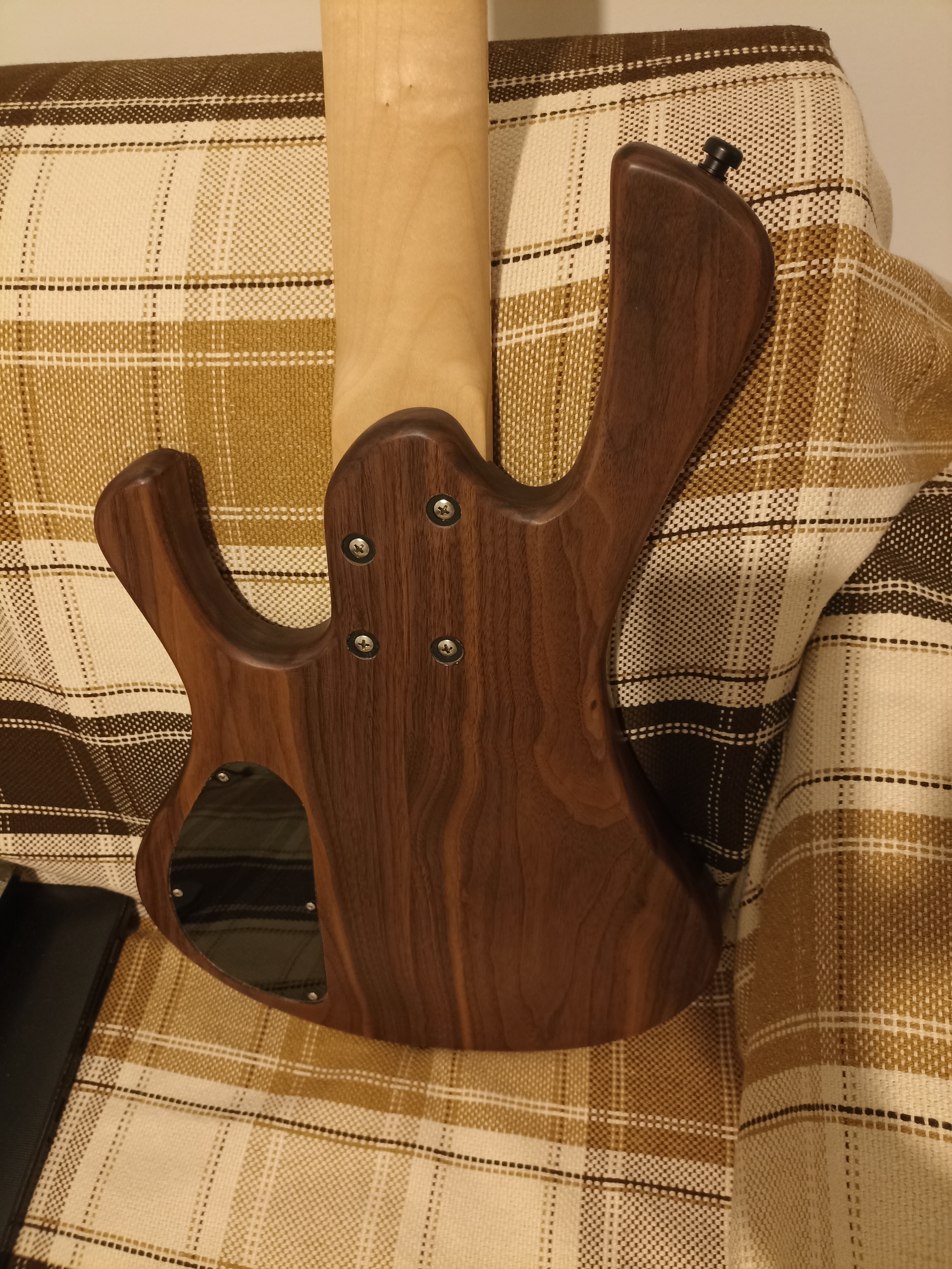Parlando dello strumento, è in abete della val di fiemme con camere tonali, top e fondo in palissandro, da qui cioccolatino, manico in acero. Lo strumento è leggero ed equilibrato. I PU sono humbucker artigianali sempre fatti dal mio amico. Ponte in ottone verniciato a polvere, capotasto in ottone, meccaniche gotoh.
