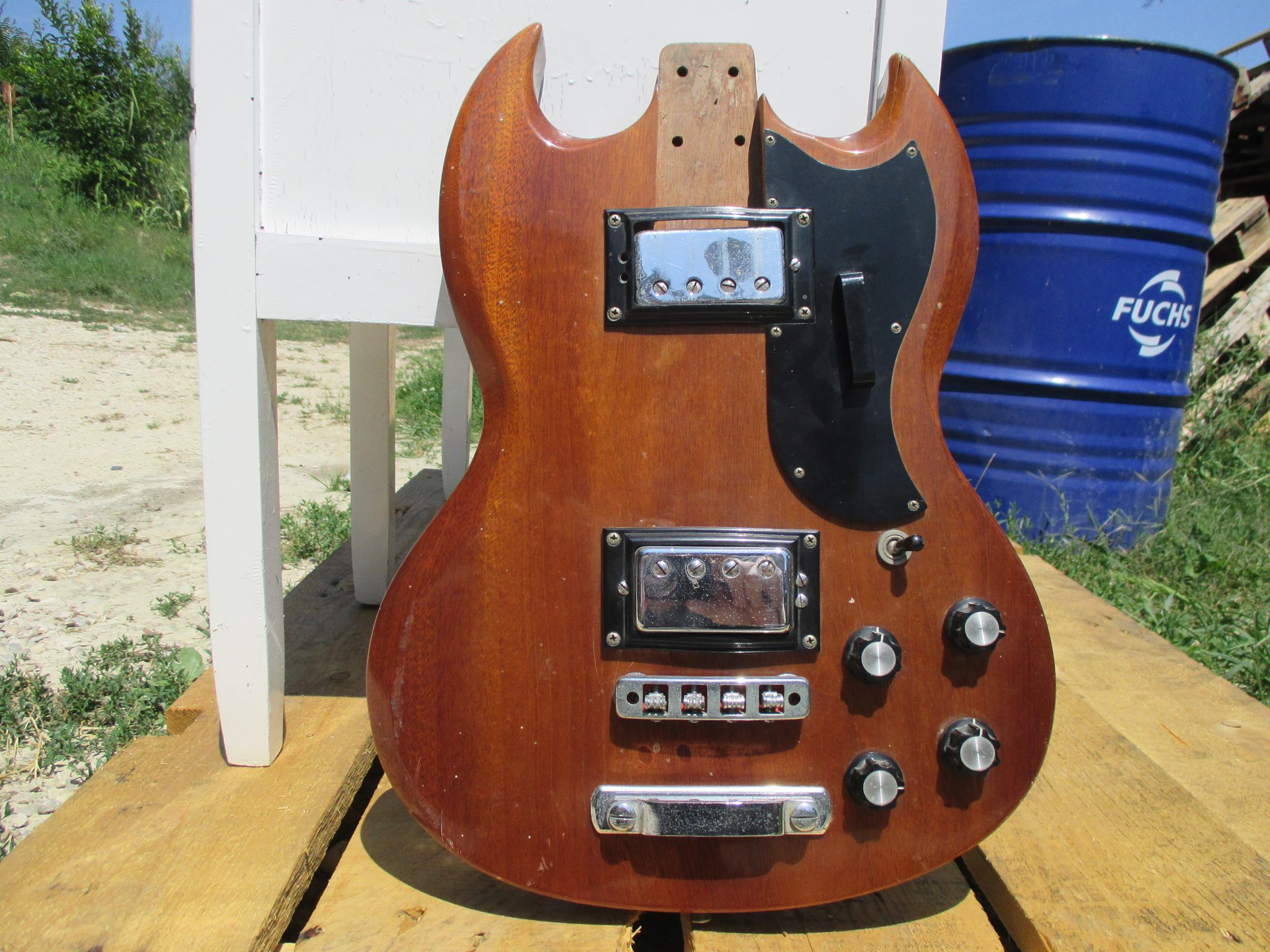 Cercando un pò in rete, il modello che più si avvicinasse è un SG copy di marca "Ventura"...ma differiscono ponte e pick-up al manico..