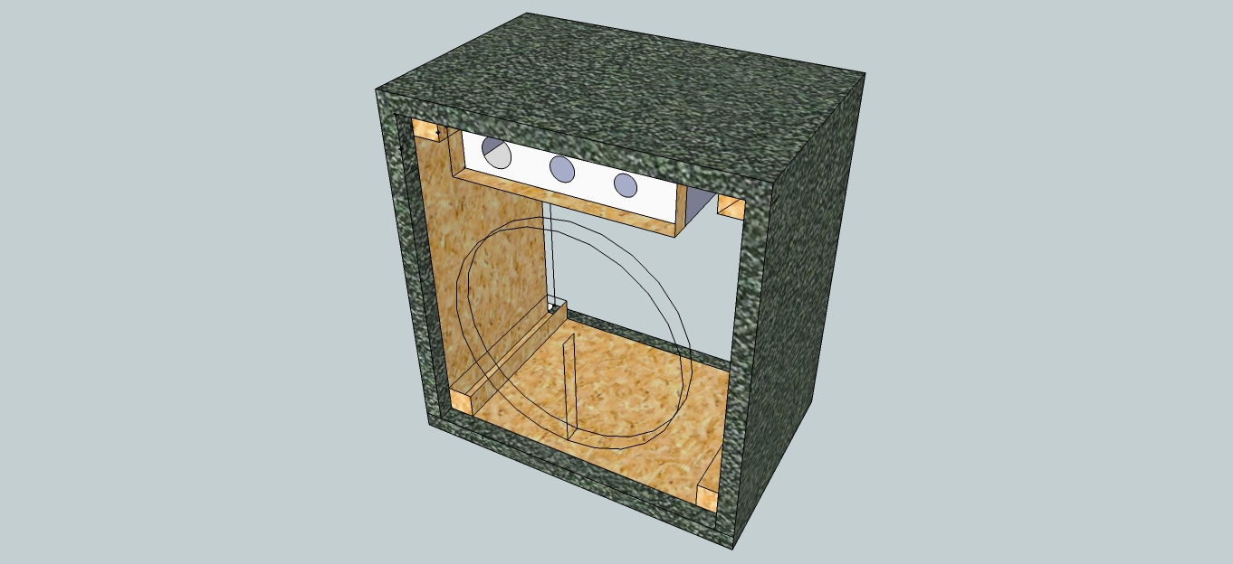 Alla fine sto adattando il progetto iniziale di una cassa 1x12", tagliata evidentemente con dimensioni sbagliate per lo scopo, a il progetto di un combo MADAMP G2 (realizzato in precedenza), con cassa da 1x10" (dispongo di un vecchio cono Fender, sarà un Eminence).