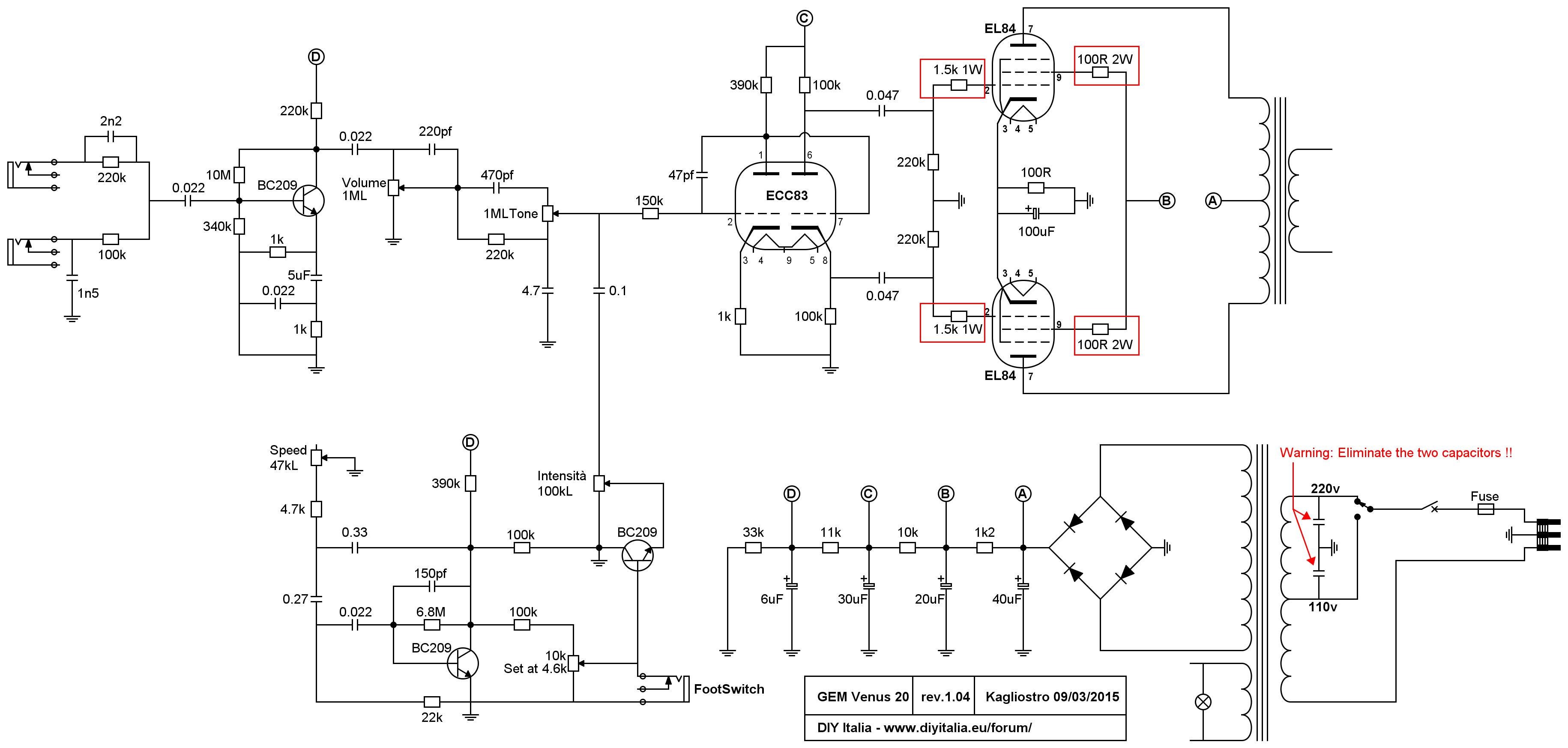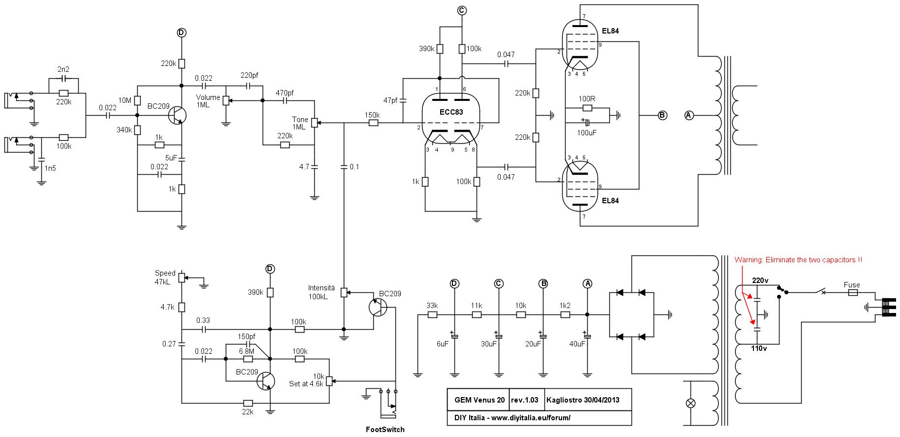 Per quel che riguarda il Gem, ho appena completato il lavoro; riassumendo, ho sostituito tutti gli elettrolitici (per quelli di filtro ho dovuto allargare il foro nello chassis, aggiungere una piccola basetta, e in generale essere un po' creativo! :face_green: ), sostituito le valvole finali, tolto i "death cap", e risaldato il jack del tremolo.