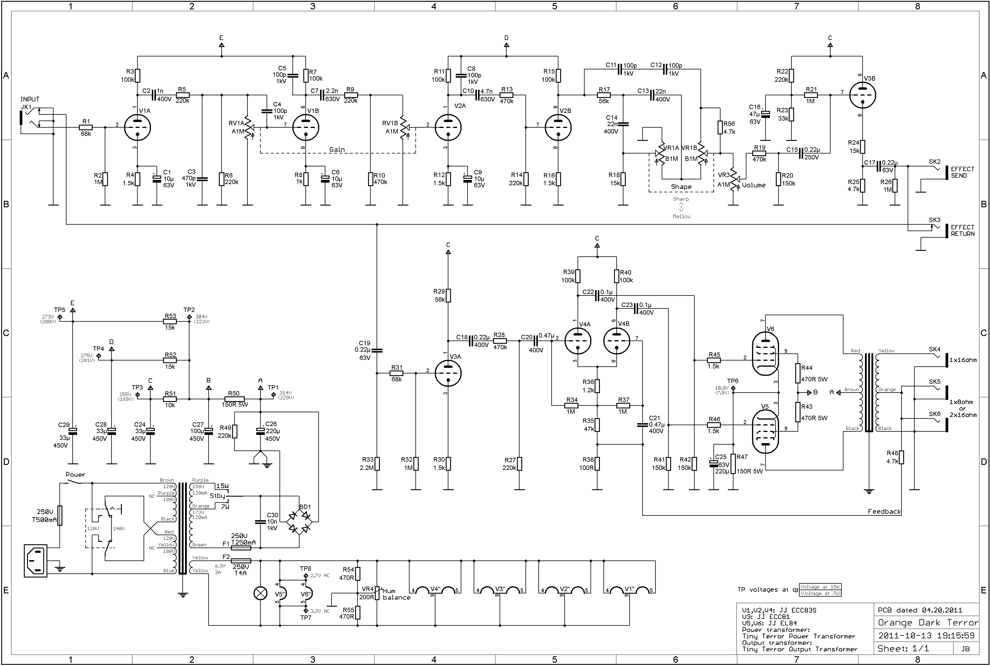 Con volume master a zero e gain a metà si sente suono chitarra,ho ricontrollato il tutto ma non vedo errori,il layout e quello in figuraOrange_Dark_Terror.pngDark-Terror-Layout-41516-grid-resistor.gif