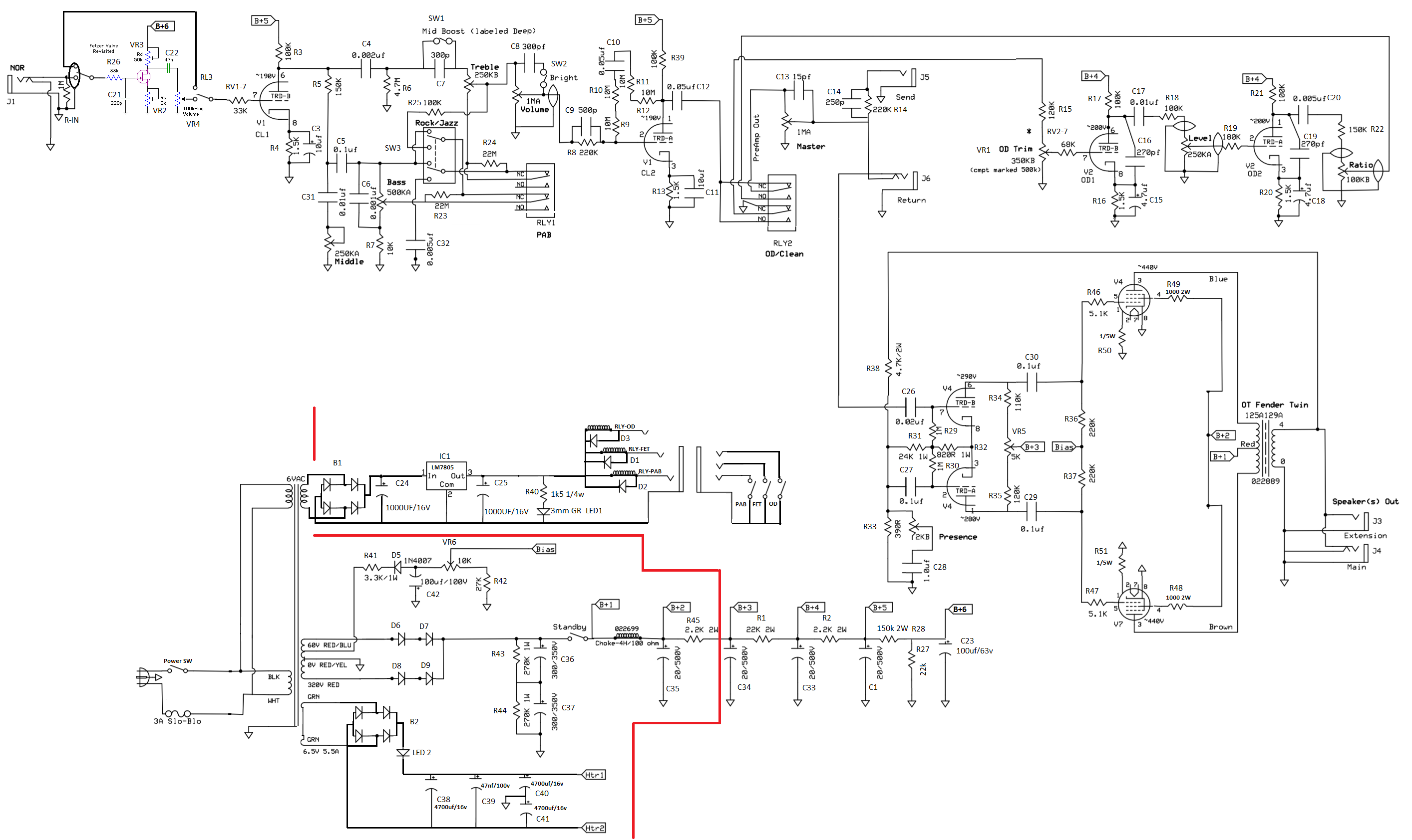 Per l'ingresso fet ho inserito un Fetzer valve del sito run off groove che simula il primo stadio di un fender, con fet j201 che quindi dovrebbe dare un bel po' di gain!