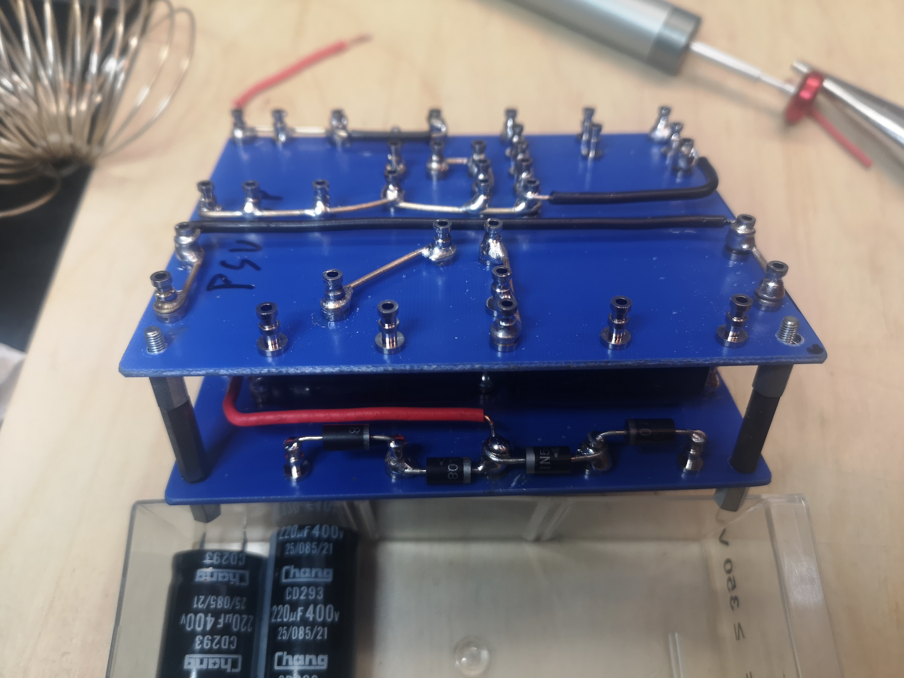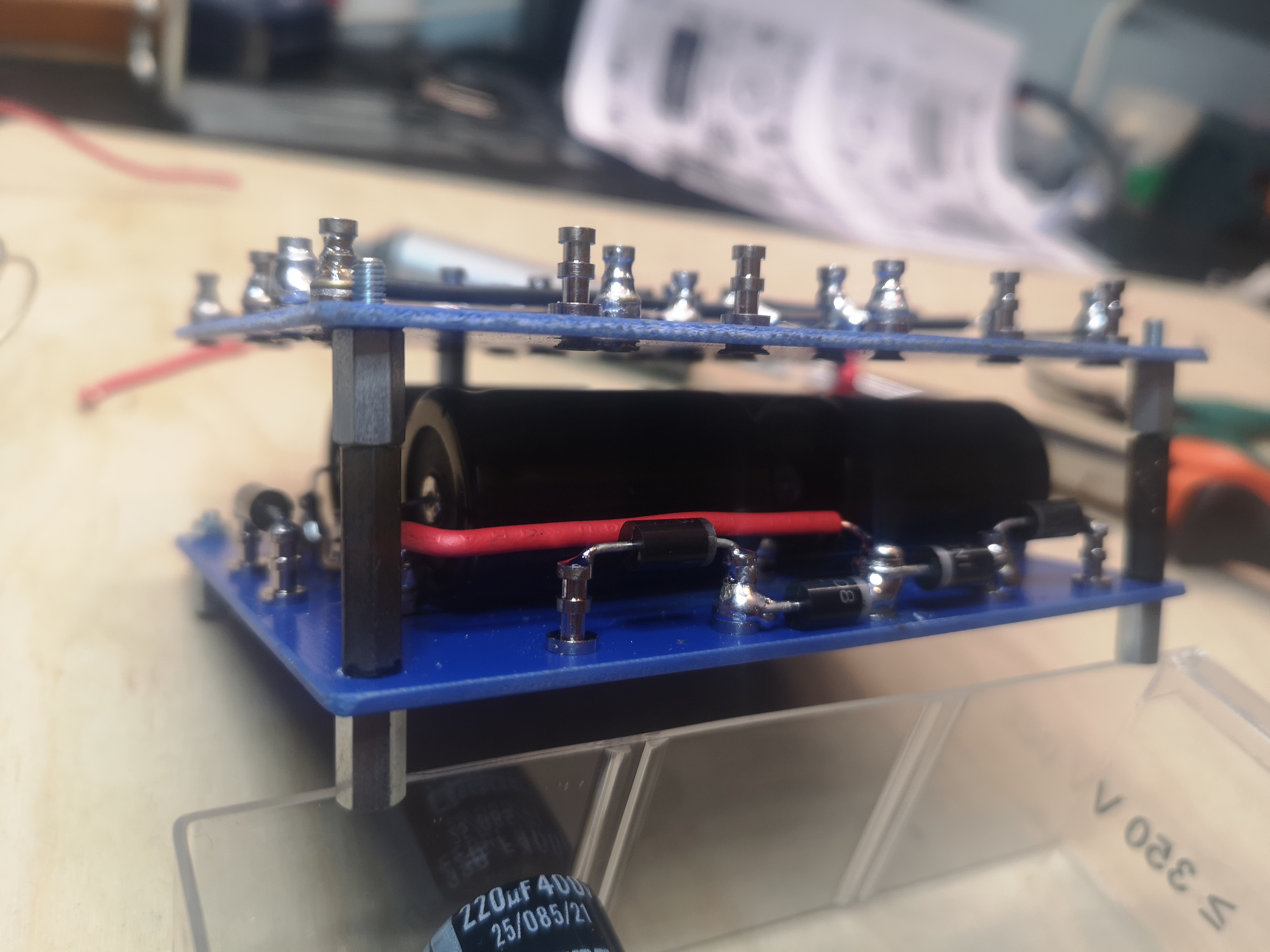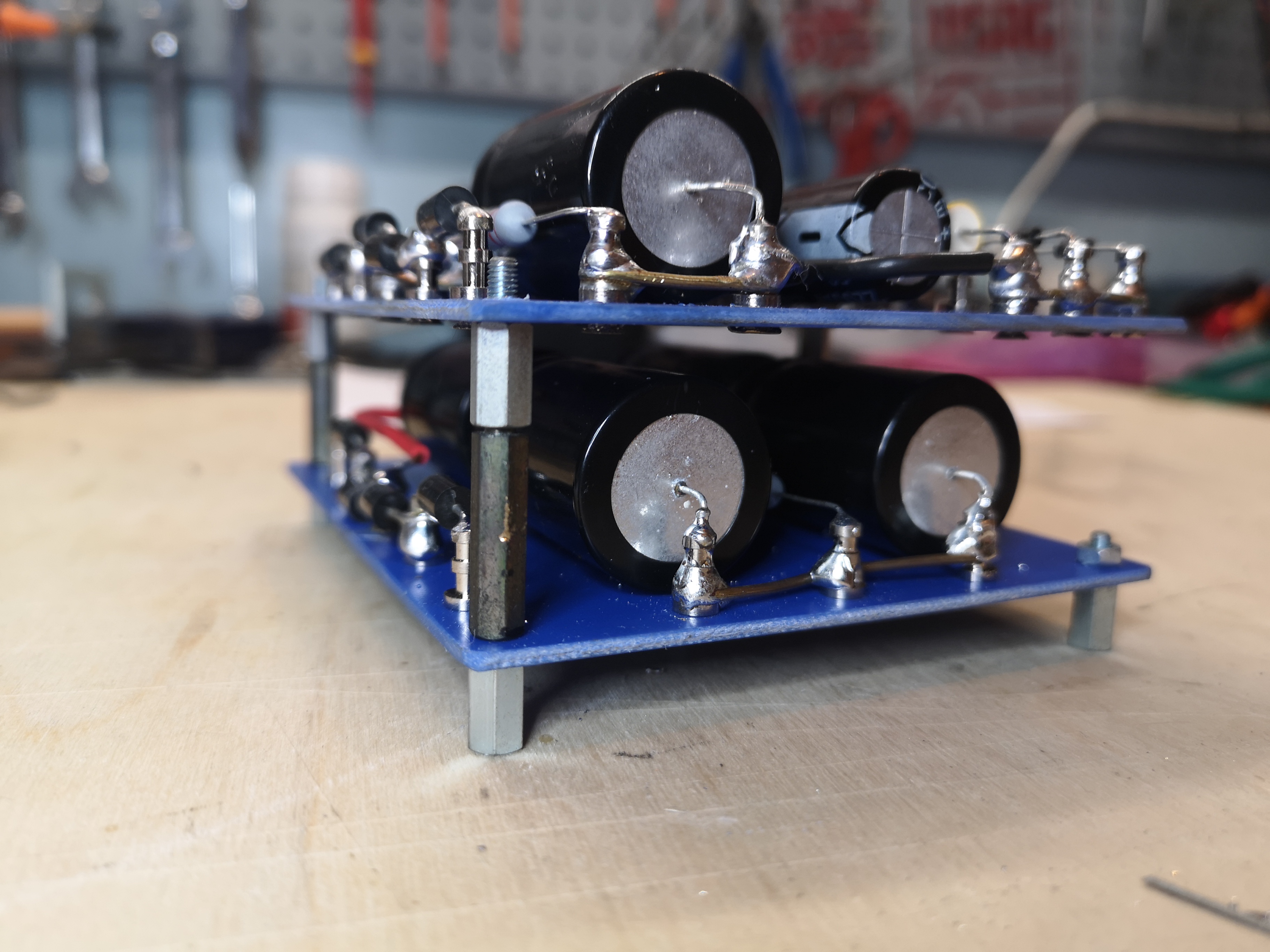 Non ho perso tempo a far coincidere perfettamente i gambi dei condensatori nelle torrette ( disegnate in 2d sempre per lo stesso motivo ).