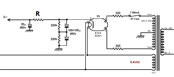 Al posto del VVR, puoi ottenere l'alimentazione direttamente dal trafo, suddividendo il secondario anodica.