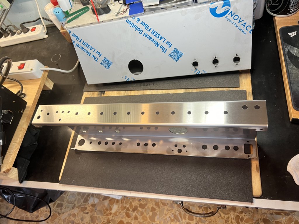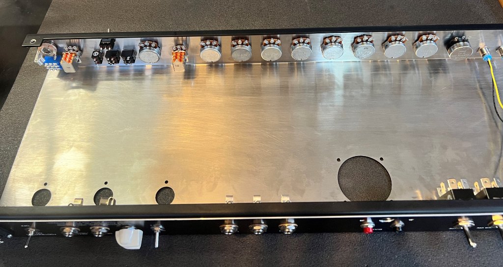 Per i resistori, la butto lì, se invece che come li hai immaginati adesso li ruoti di 90° i due fili che vanno verso il pot dovrebbero risultare della stessa lunghezza, la differenza è veramente minima, ma visto che si può ancora decidere ....
