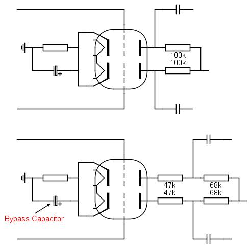 proprio condensatore di bypass, visto che con questa modifica i catodi sono separati l'uno dall'altro