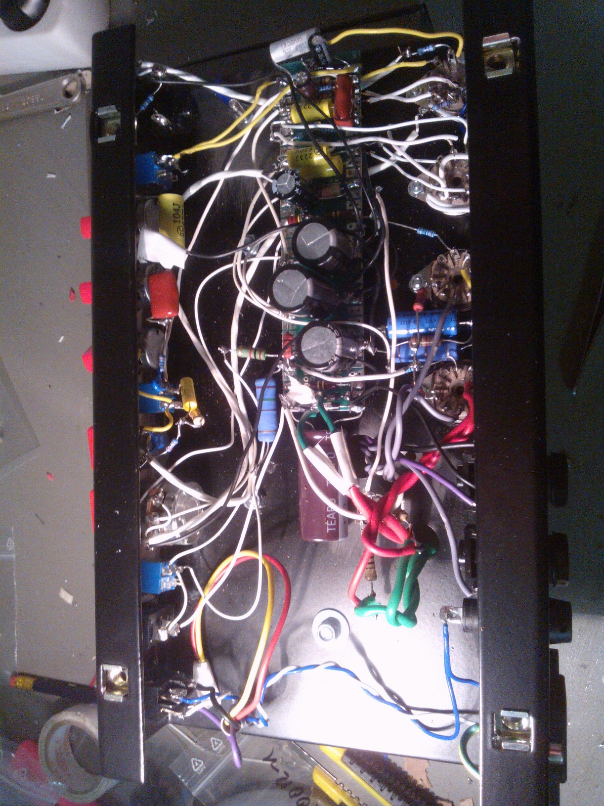 - ho dovuto usare i cavi schermati nel pin 2 del potenziometro del gain e nei pin 1 del doppio potenziometro del master, senza di essi oscillava col gain al massimo