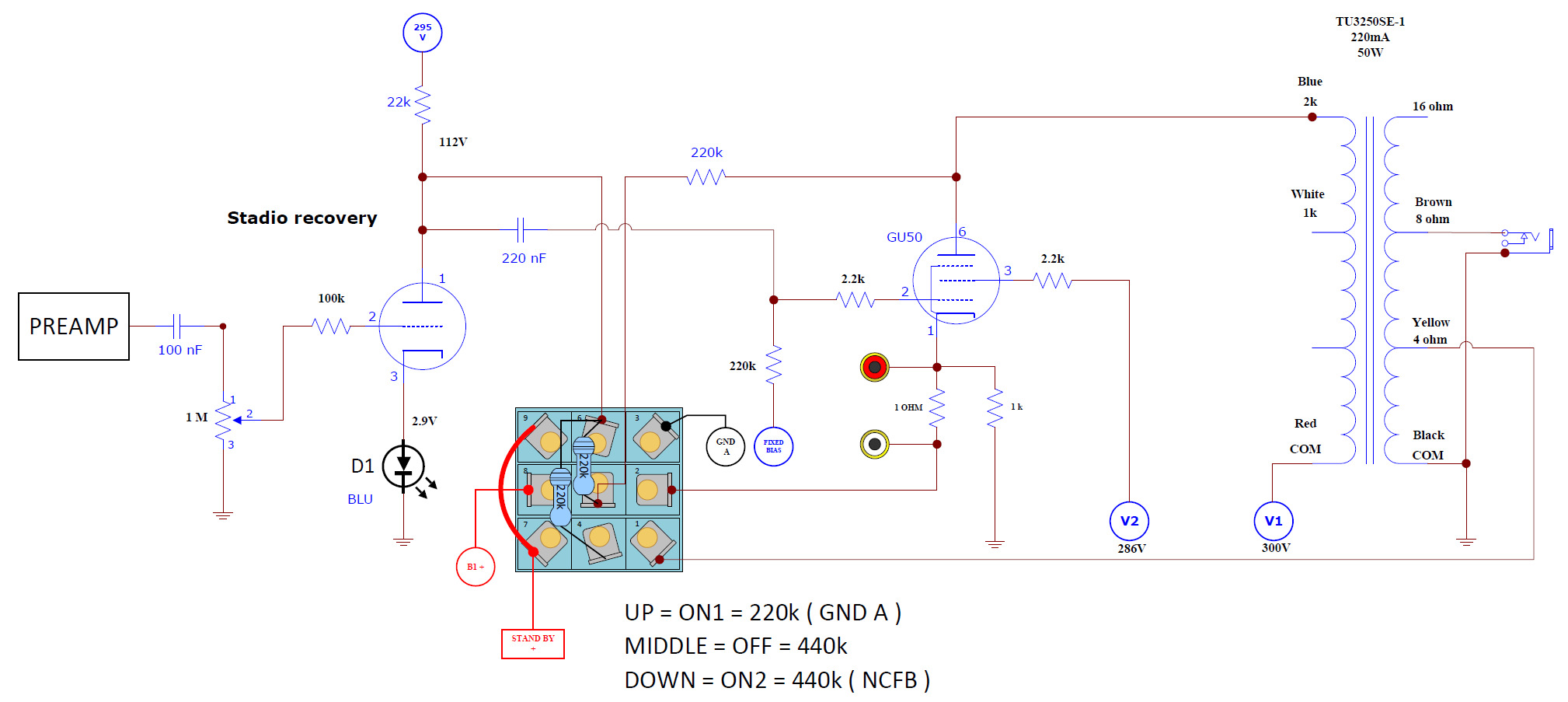 Quindi ho deciso di cablare PENTODO - NCFB1 -NCFB2 - con resistenza anodo / anodo e mi sono concentrato nell'ascoltare tutto con queste 3 possibilità. A mio gusto personale, rimane la migliore scelta.