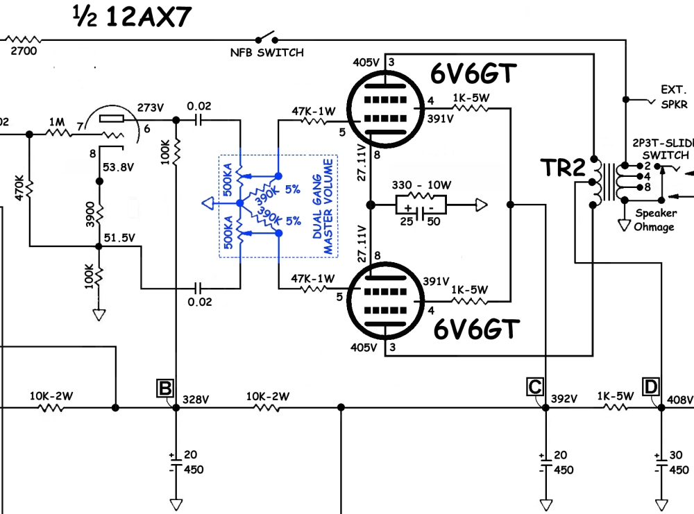 Quindi, se ho capito bene il pot deve essere da 250K e R9 da 14,7K ...e le due resistenze da 390K.....non servono più?
