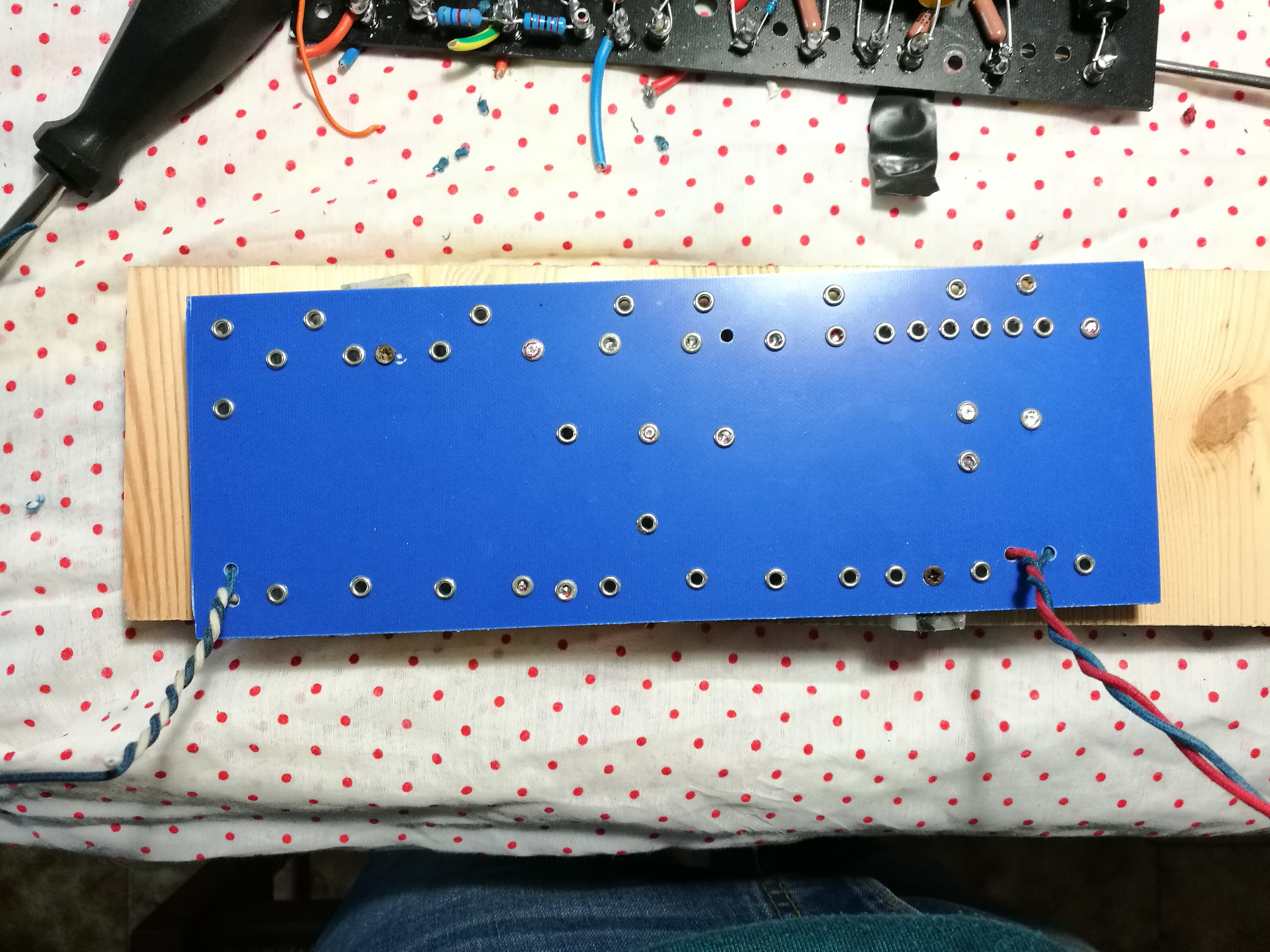Ciao ragazzi, ritorno a rompervi le scatole.. mi è appena arrivato il pacco e mi sono messo a lavoro.. ho rismontato (ahimè) tutto, rifatto la basetta ex-novo e creato sulla basetta una linea di ground (quella in alto) che prima non avevo (ho notato che un condensatore era per metà non saldato).. ora posto le foto.. per il segnale sto usando cavo schermato, per il resto quello rivestito in cotone (fa tanto vintage).. a breve lo richiudo.. sperando bene