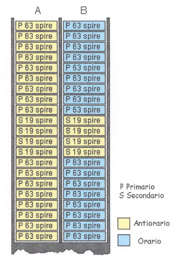 nel disegno preso da Giunchi, per un TU da PP in una gola il primario è avvolto in senso orario, nell'altra gola in senso antiorario