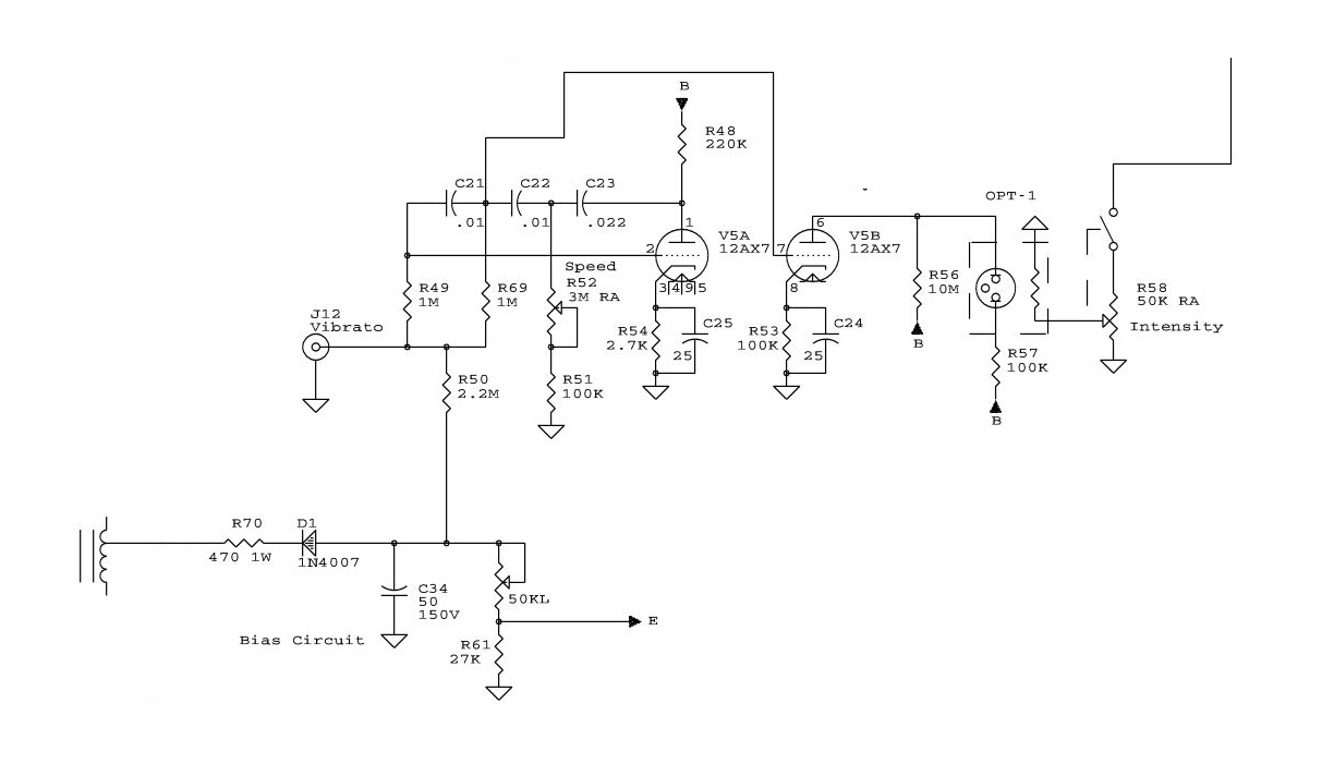 Ho provato di tutto, dopodiché mi sono confrontato con nik di ceriatone, perché ho visto che nei suoi cloni usa un circuito che chiamano a bias variabile cioè sulla falsariga del fender che ho postato, e mi ha sconsigliato il circuito originale: primo perché a suo dire suona male e poi perché è suscettibile a problemi vari.. googlando un po' ho verificato che sono vere entrambe le cose e quindi mi sento di mollare il progetto originale a cuor leggero.