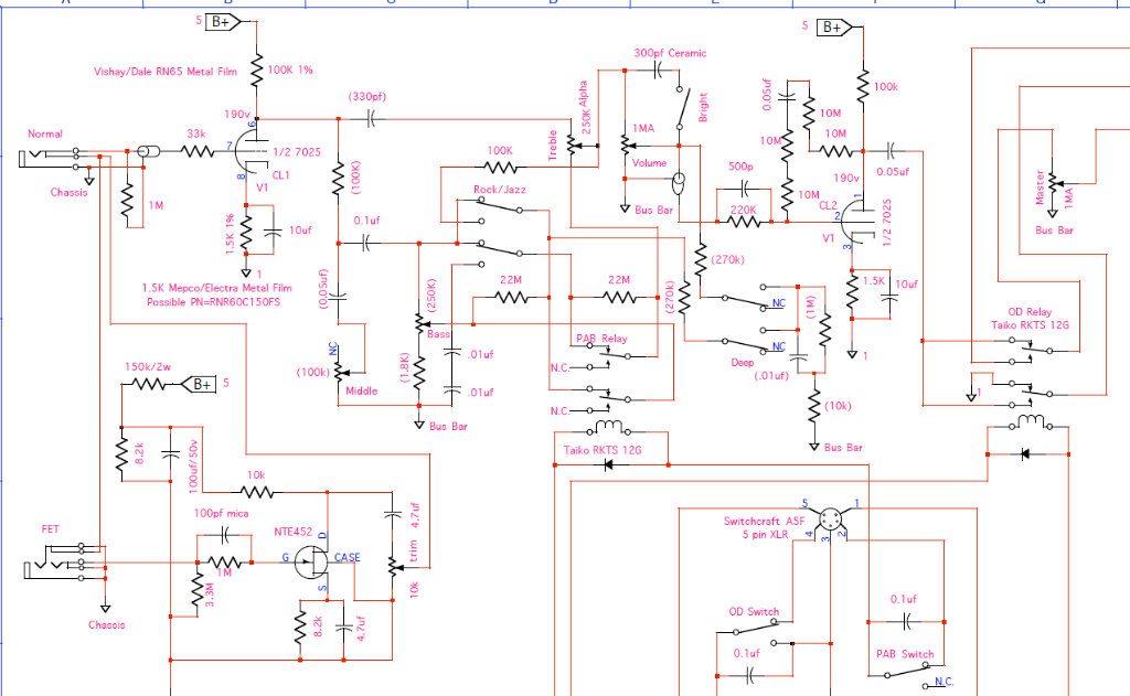 lo switch del Mid Boost, si può farlo come si vuole, o sul pot dei medi (come l'originale) o come toggle switch con gli altri, come ci pare meglio, a parte che forse evitare un pot (credo da 100K Lin) PP rende più semplice la reperibilità dei componenti