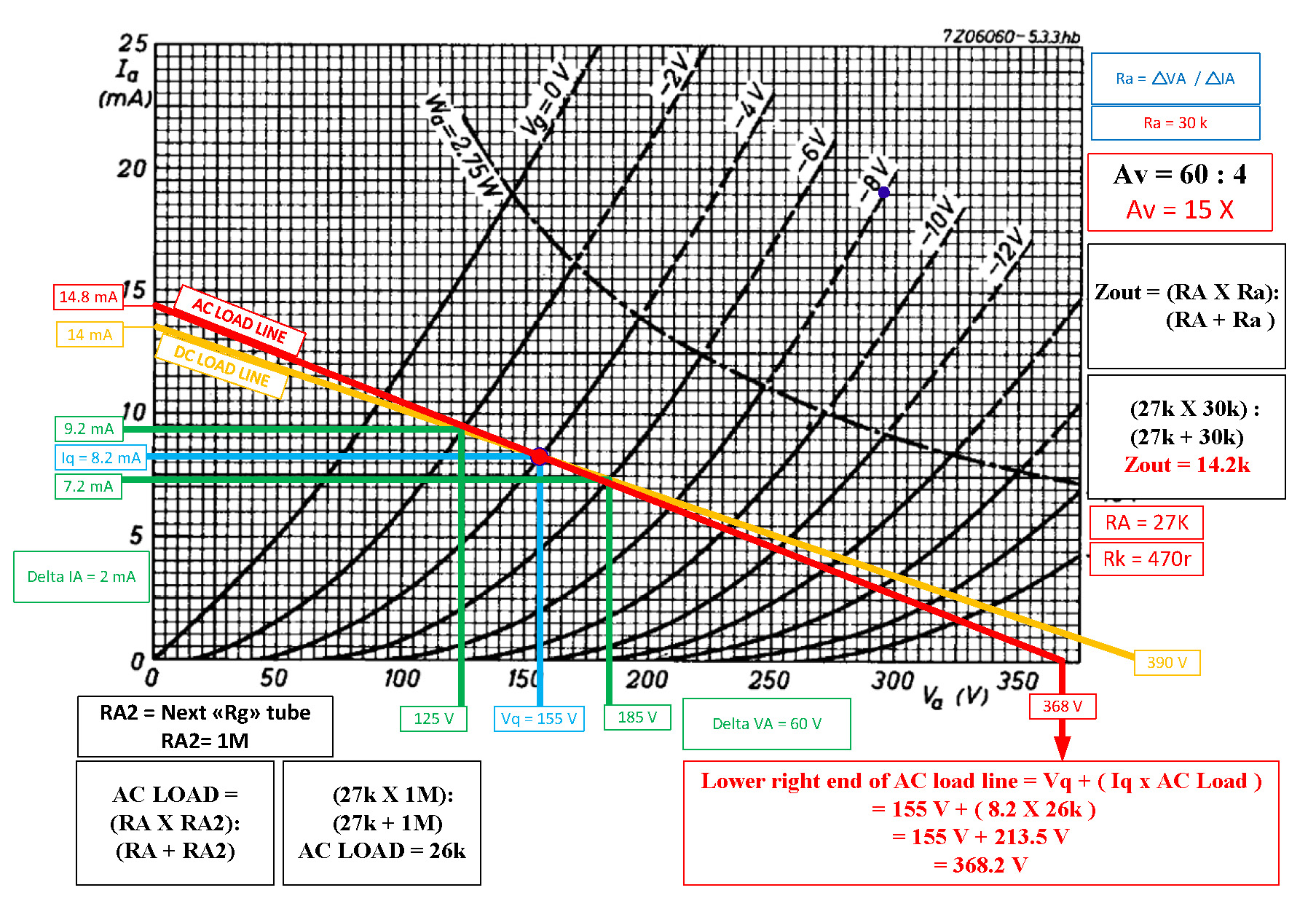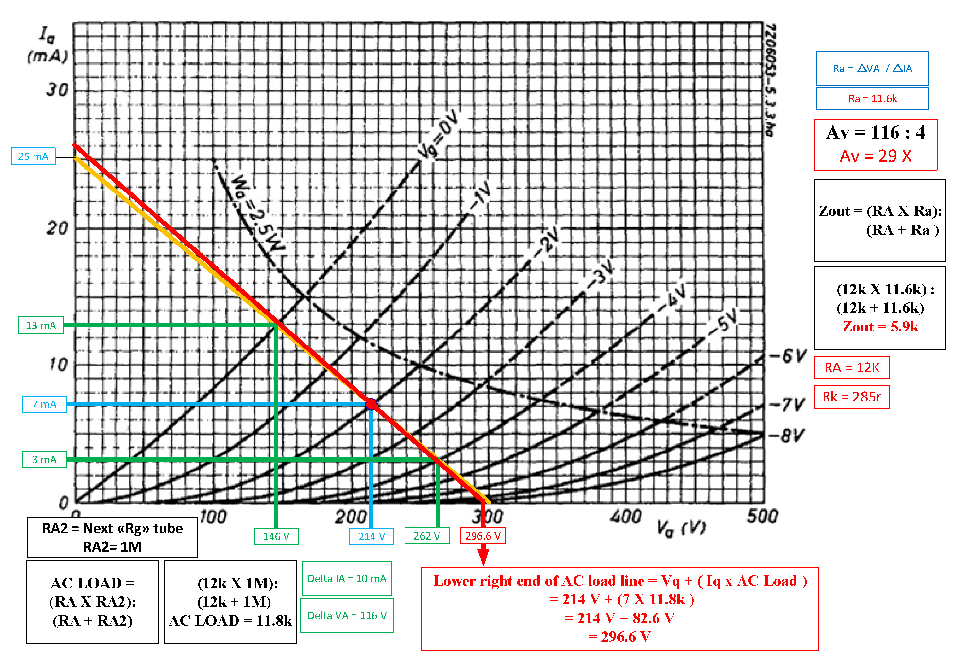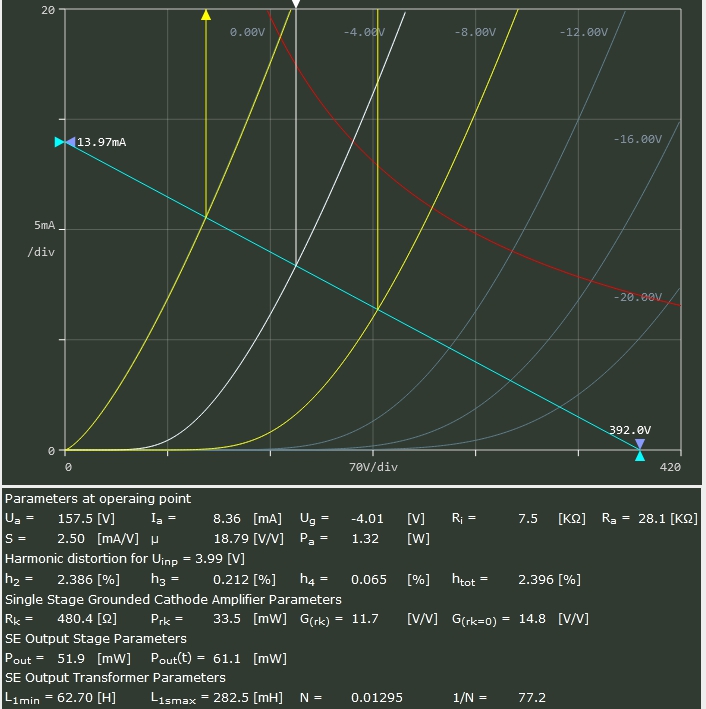 I calcoli ti sembrano corretti? Non capisco perchè il valore della resistenza interna del triodo ( Ra o come nel grafico del calcolatore Ri ) ha un valore tanto lontano dalle mie stime.