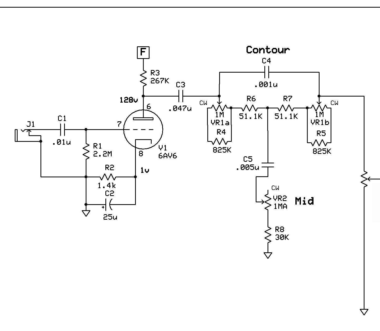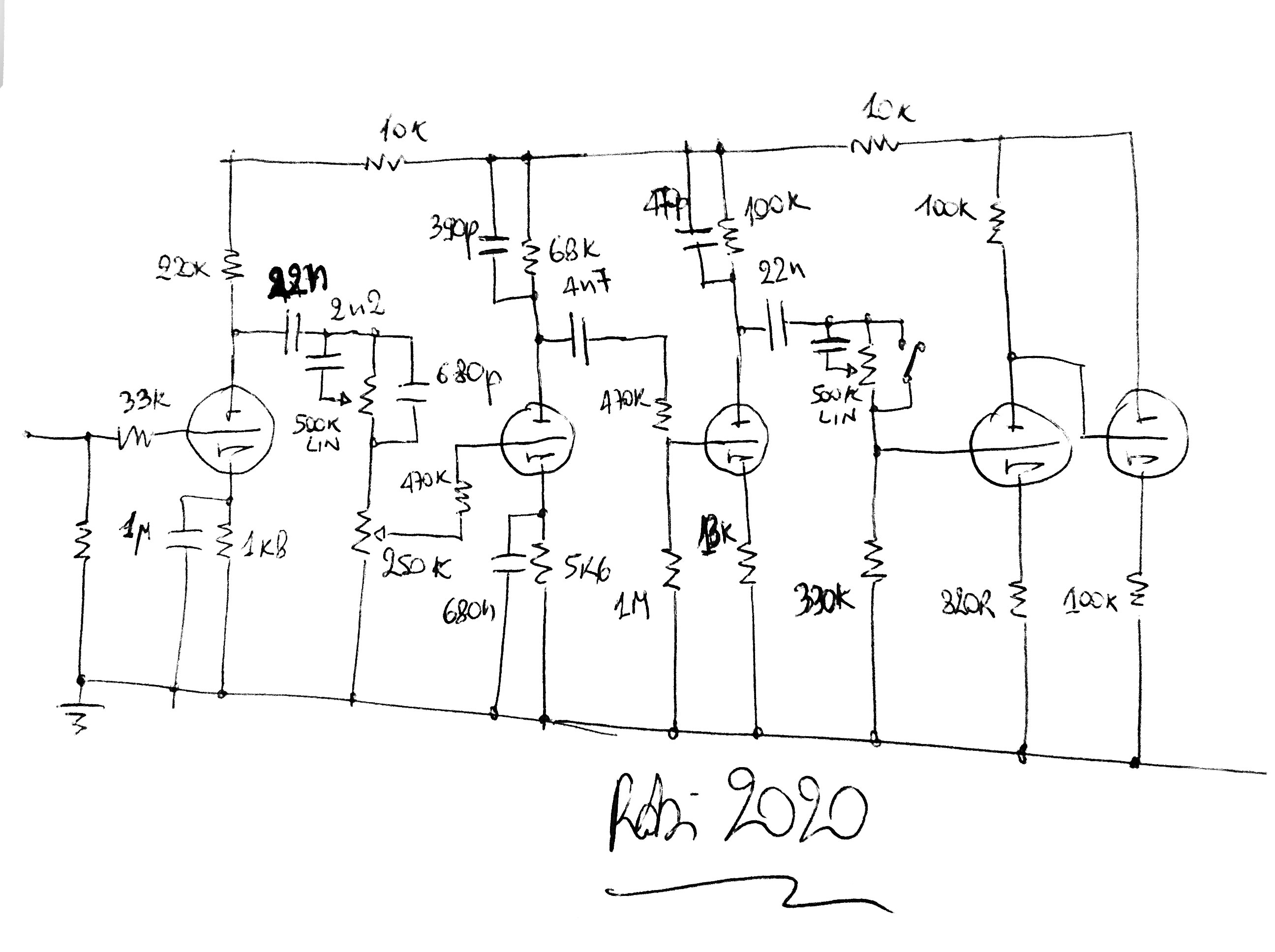 Uso 250k sul gain per diversi motivi: non ha bisogno del bright cap, è più stabile ai vari gain con lo stesso grid stopper dopo, e rende il filtro precedente più efficace rispetto al 500k, oltre ad essere meno rumoroso.