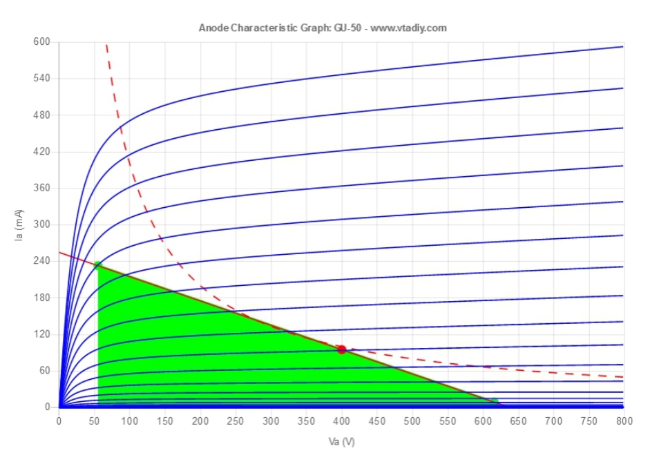 prova con LTSpice, perchè con due GU50 in parallelo riesci ad ottenere molto più di 16W in classe A1, secondo me almeno il doppio. Soprattutto considerando il 15% di THD. Ti consiglio di mettere circa 15V su g3, perchè migliora molto le curve (le sposta in alto a sinistra).