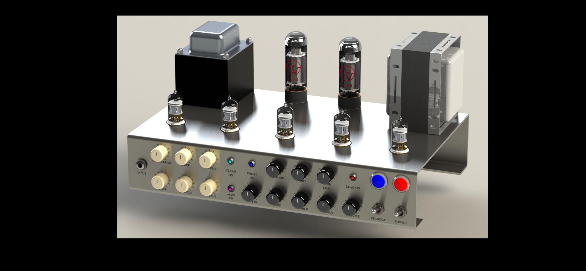 Visto che i trasformatori avranno un logo, ti proporrei di ruotare di 90° il trasformatore tipo Hiwatt, così che si veda il logo da dietro.