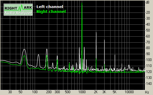 allego l'FFT senza e con questo accorgimento del resistore fra i due cap uniti e massa.