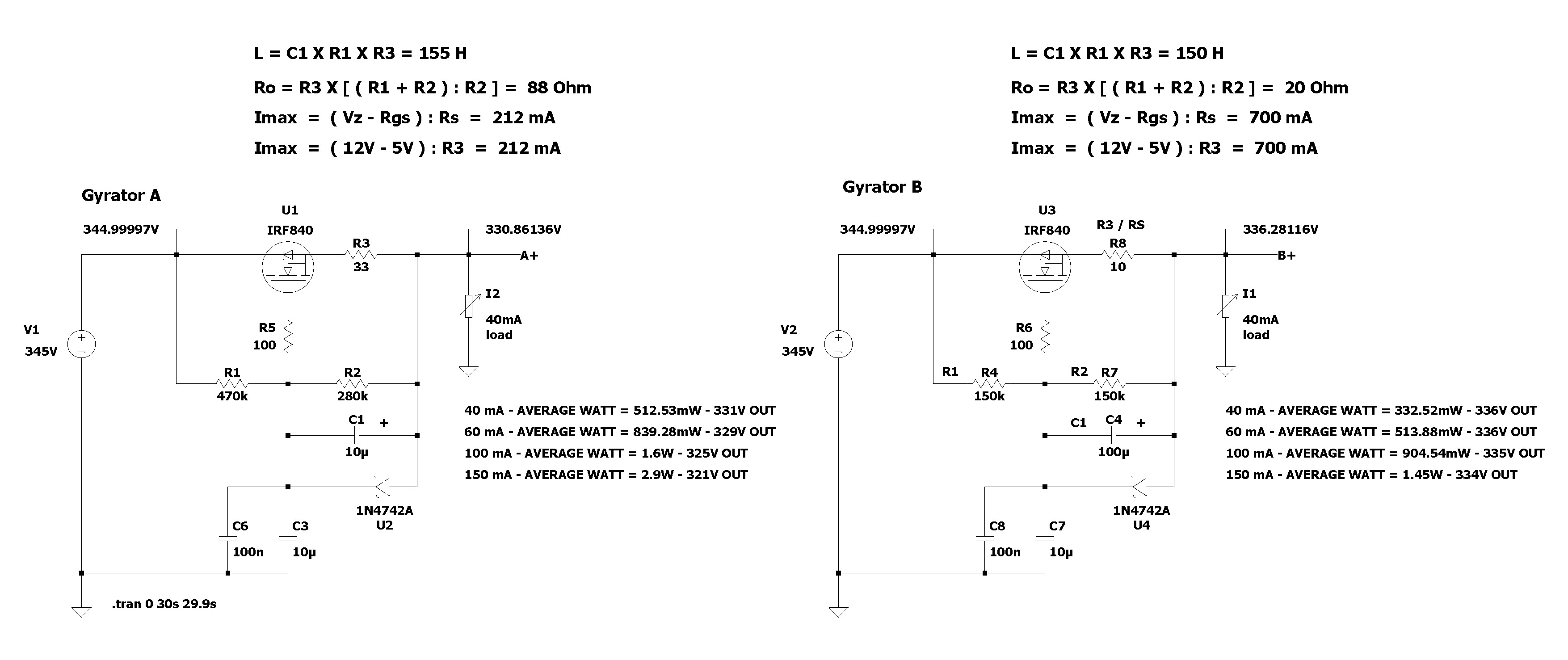 Ho fatto dei confronti con un altro gyrator con circa gli stessi Henry, ma con corrente superiore e senza drop di 6V in più.