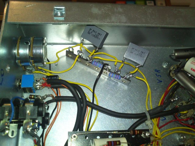 A prescindere dal segnale invece a circa 3/4 di giro si innesca un fischio. Non è graduale ma parte di botto...potrà dipendere dal layout delle modifiche non certo curato? Lo switch li di fianco è quello con cui escludo V2 ed inserisco il 47 uf sul clean, ma non dovrebbe dare problemi...