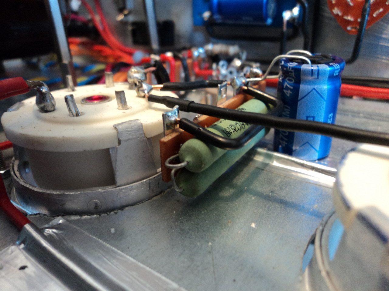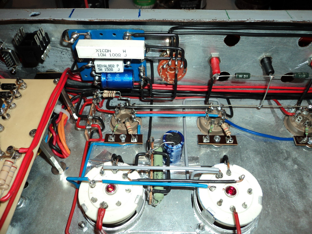 Sono dovuto scendere a compromessi con le resistenze di bias. Ho dovuto adottare 100r anzichè 90r per le KT88. Ma credo che stare un pelo più bassi sulla dissipazione di certo non faccia male. Ho assegnato alle GU50 resistenze e condensatore di catodo separati dotandole di bias fisso. In questo modo quando si mettono le GU50 al posto di qualsiasi altra valvola lo switch rotativo non ha effetto su di esse ( ...mi si complicava la vita per gli spazi per la board dedicata al cambio resistenze e non avevo un switch rotativo a 4 vie ! ).