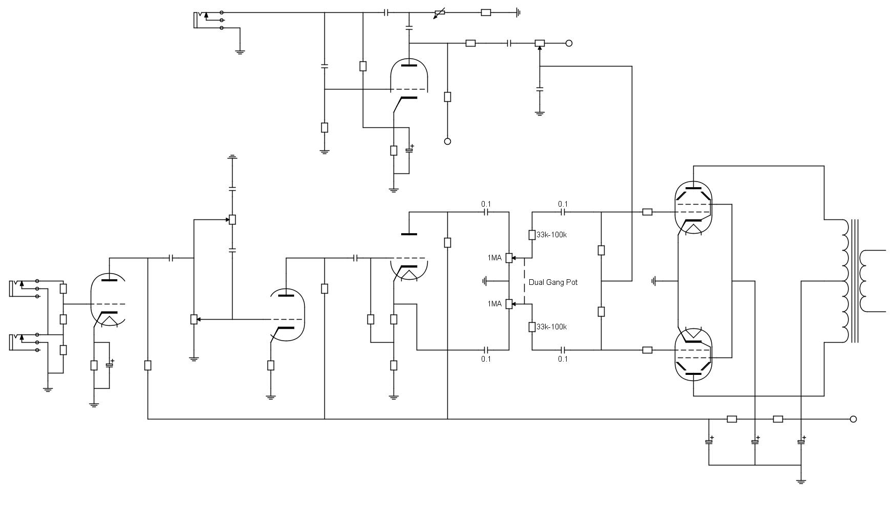I due pot hanno un unico alberino, per cui azionandolo vari il livello del segnale che va a tutte e due le valvole contemporaneamente ed il suono resta PPI pot vanno collegati in modo che il wiper sia a zero con la rotazione completa antioraria
