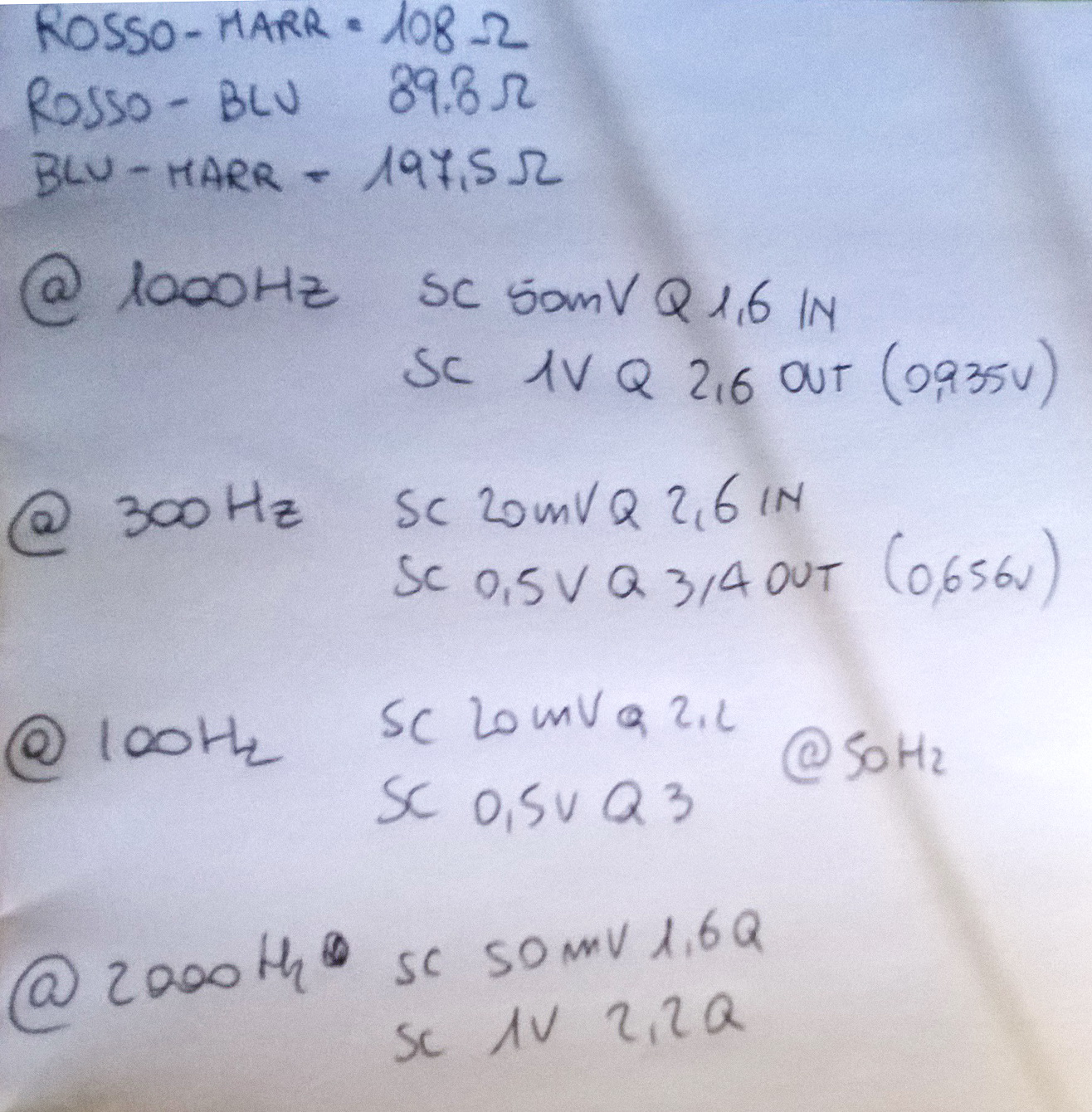@1000Hz con un out di 2.6volt pp mi veniva circa 32,5 che dava 8450 ohm . era per quello che ho aspettato la seconda sessione usando dei segnali più alti e quindi più vicini al punto di lavoro .