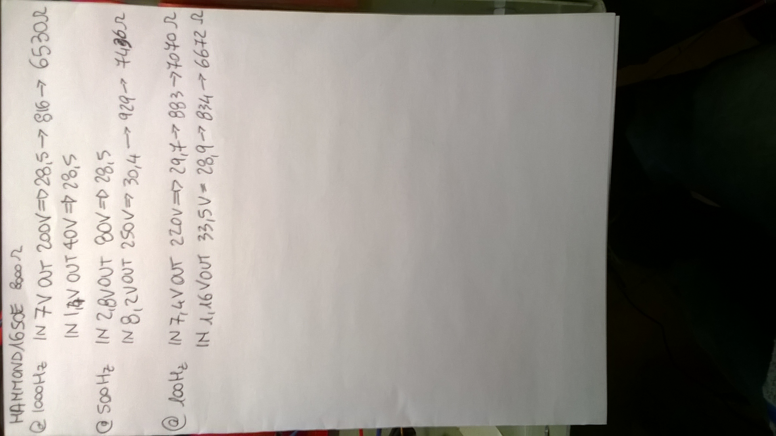 Per copletezza pubblico anche i valori rilevati da un trasfo hammond 1650E nato per un pp di el84 . Dovrebbe essere un 8000 ohm 15 Watt audio . Spero di non essere fuori tema . Ciao ciao