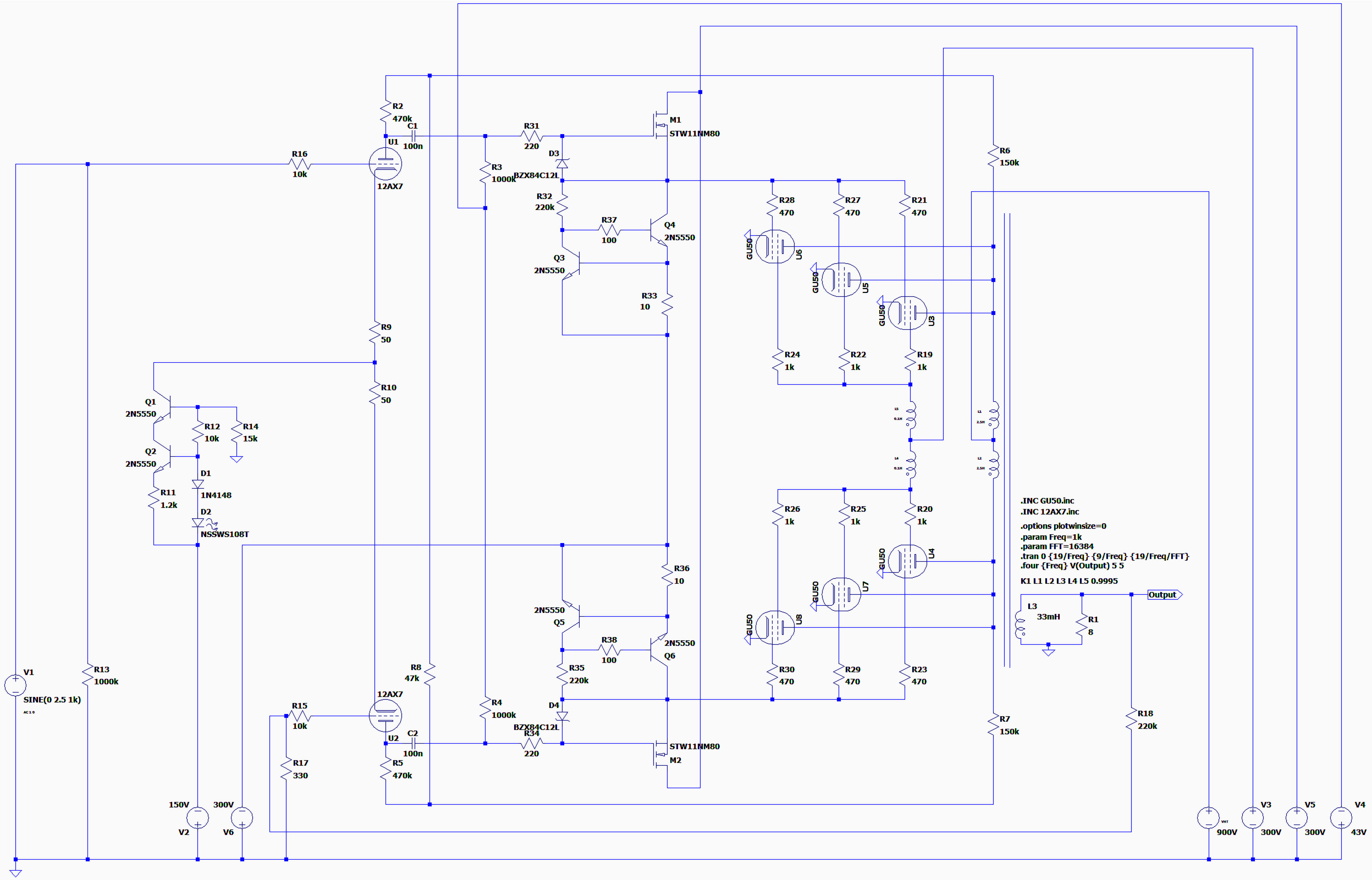 Ma, domandona, perchè invece delle GU50 non usi le KT150? sono delle belle bestie, basterebbe scalare un po la tensione anodica e diminuire la Zaa, cosa ne pensi?