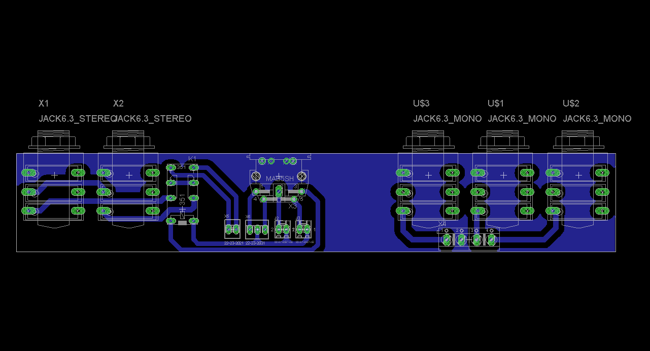 - Traccia Blu: Soluzione 2 - finali e board LoopFX+FootSW+Jack Output connesse su massa Pre