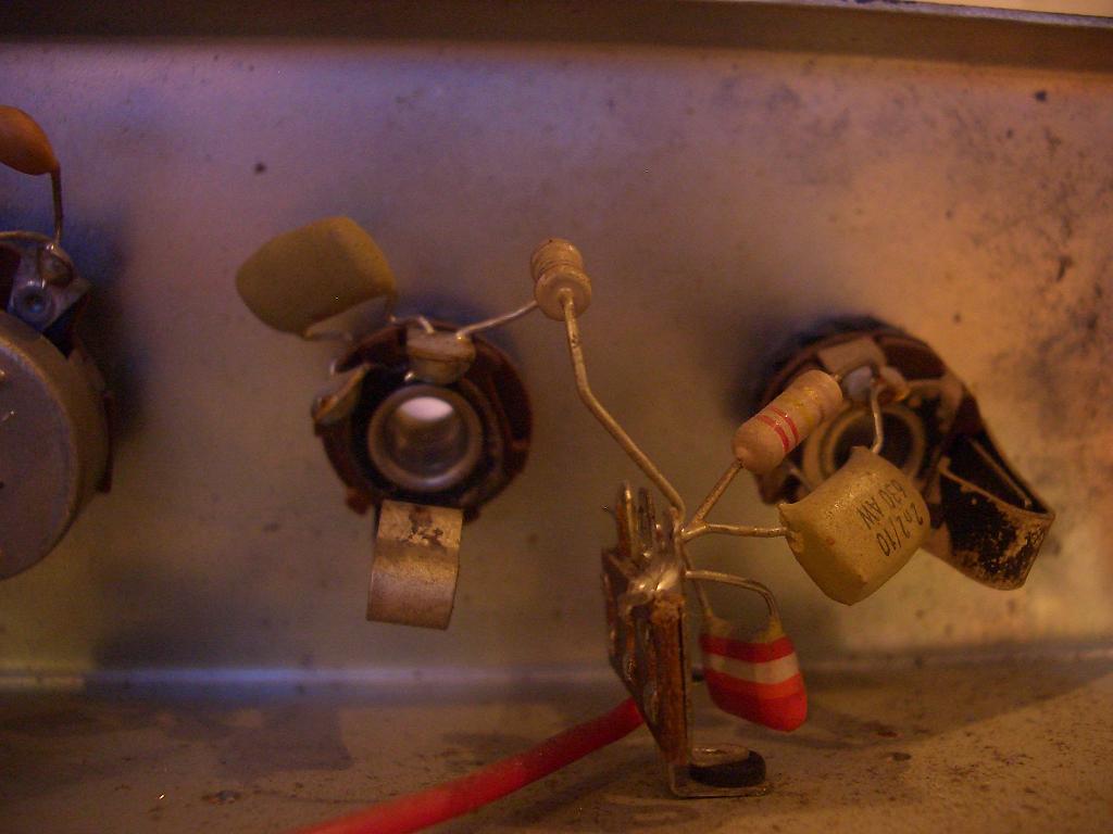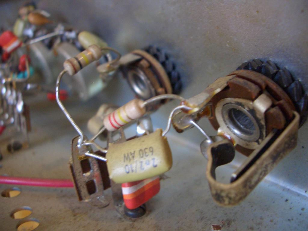 Ti confermo che i transistor sono tutti e tre BC209, tra l'altro ho notato che c'è una foto a metà della prima pagina di questo thread in cui si vedono abbastanza bene tutti e tre (solo uno è un po' nascosto dal trimmer), la "04-controlli". Subito sotto ce n'è un'altra, "06-input", in cui si vede abbastanza bene appunto la parte riguardante l'input. Purtroppo ho qualche incertezza particolare sul modo in cui sono cablati tutti e tre i jack; per quel che riguarda gli input perchè non ho nessuna esperienza con i jack tipo Switchcraft/Fender avendo sempre e solo usato i Cliff stile Marshall, per quel che riguarda il jack del tremolo perchè del tutto assente, col cavo "svolazzante" in mezzo al circuito (non ho idea del perchè qualcuno abbia pensato di scollegarlo)...