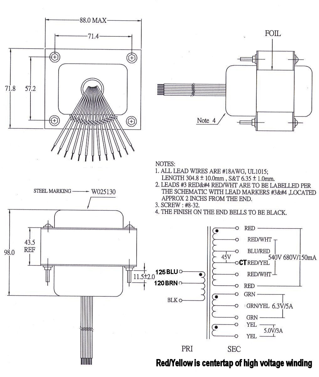 Questo sarebbe il trasformatore previsto.. e dal layout utilizzano l'uscita più alta 340+340v....
