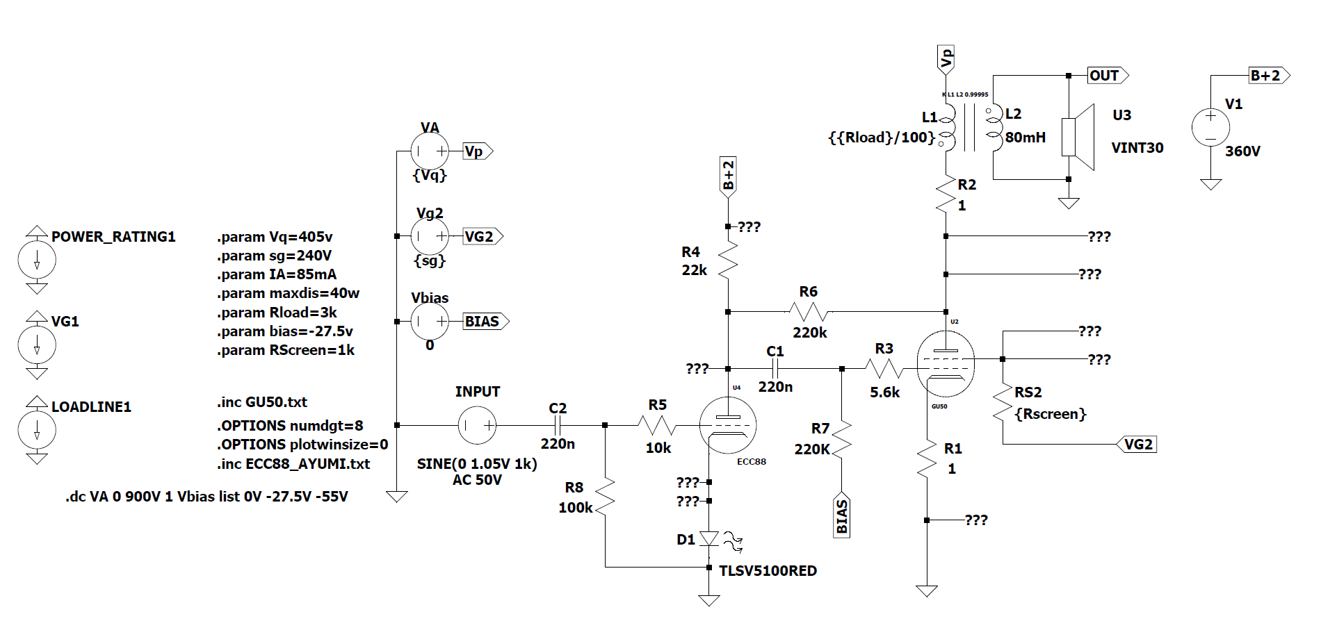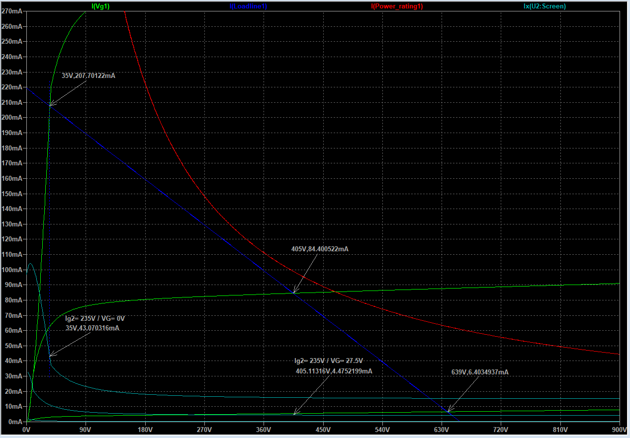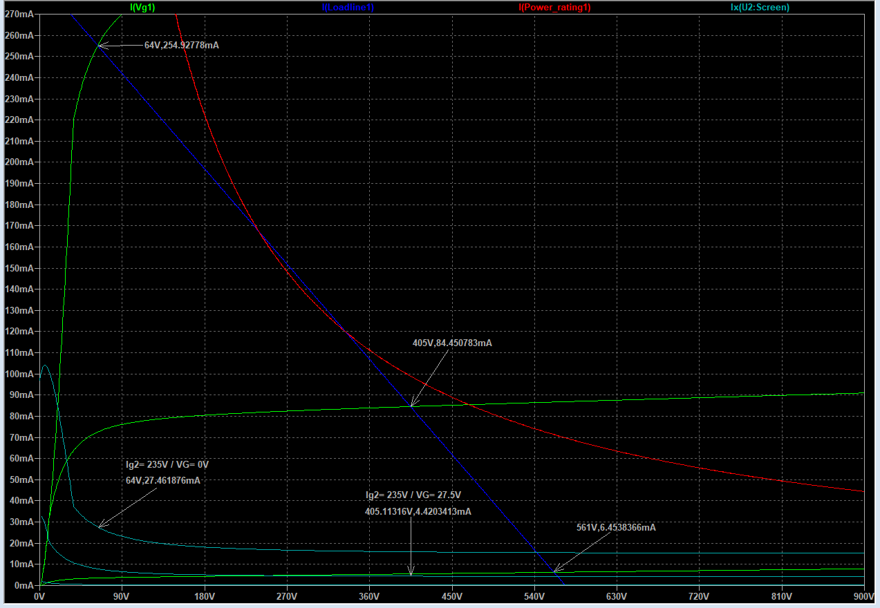 Poi si cerca di arrivare in prossimità del ginocchio del pentodo a centro banda lavorando sulla tensione di alimentazione e su Vg2.