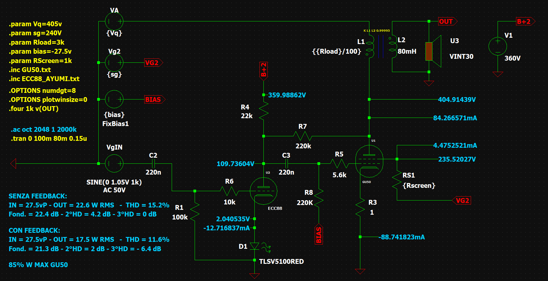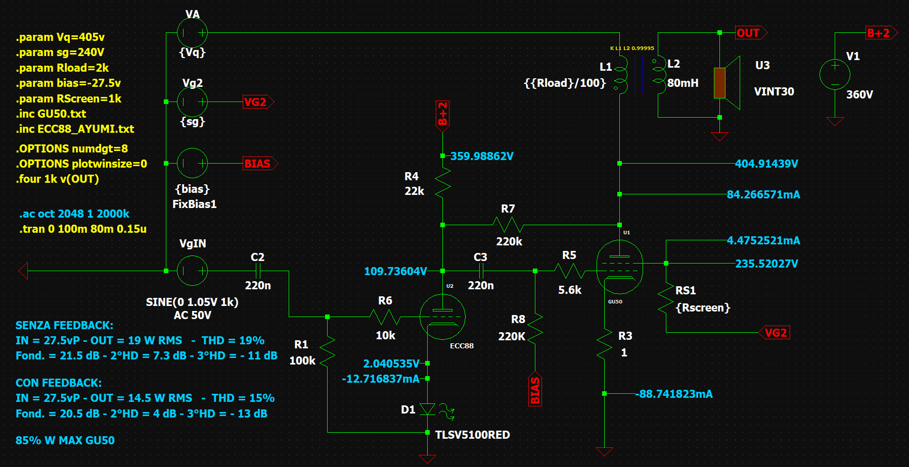 Nel senso che non sono riuscito a far cambiare le curve minimamente nella simulazione grafica pur mettendo il triodo ed il feedback.