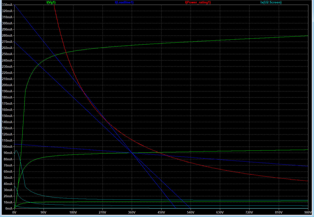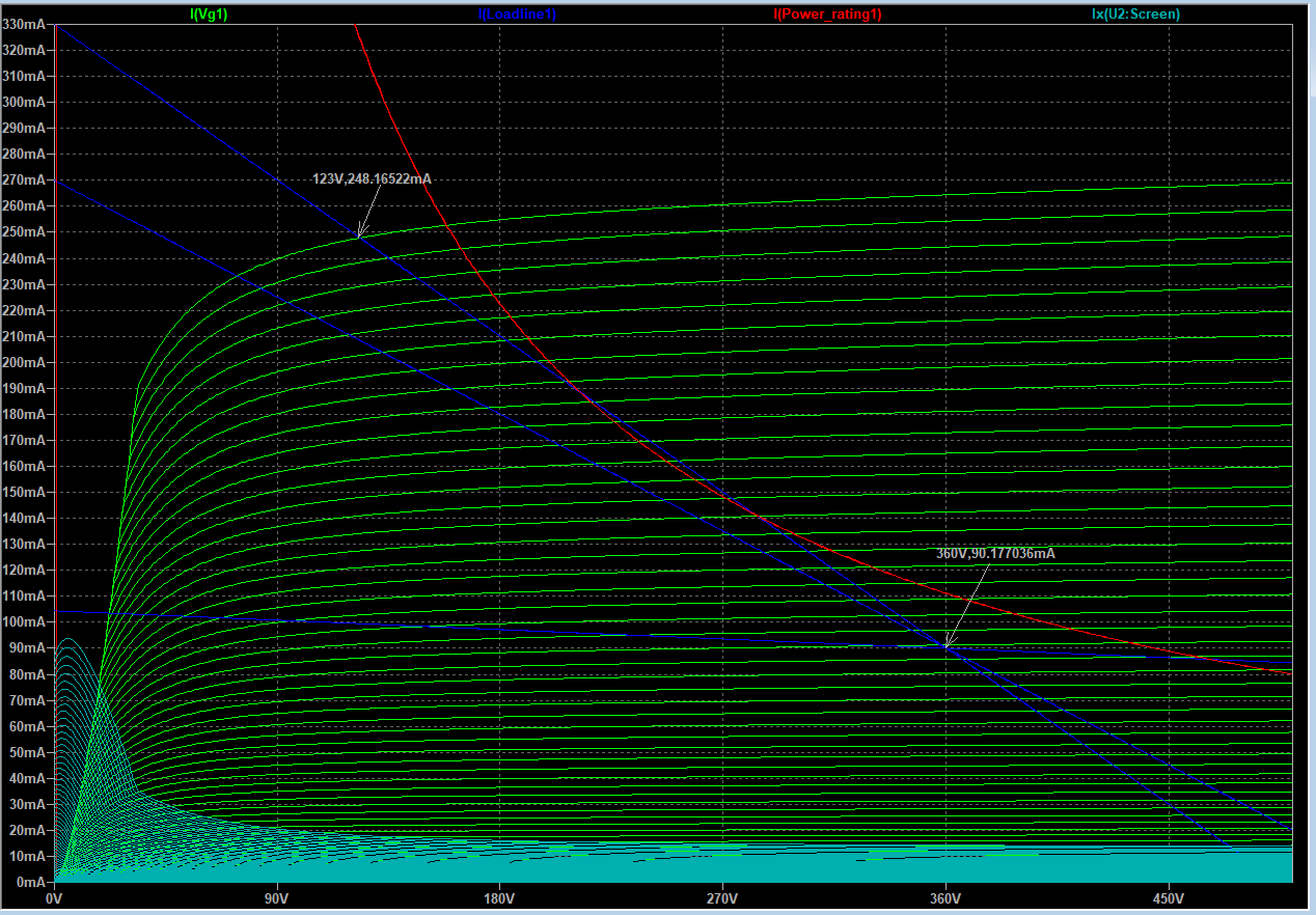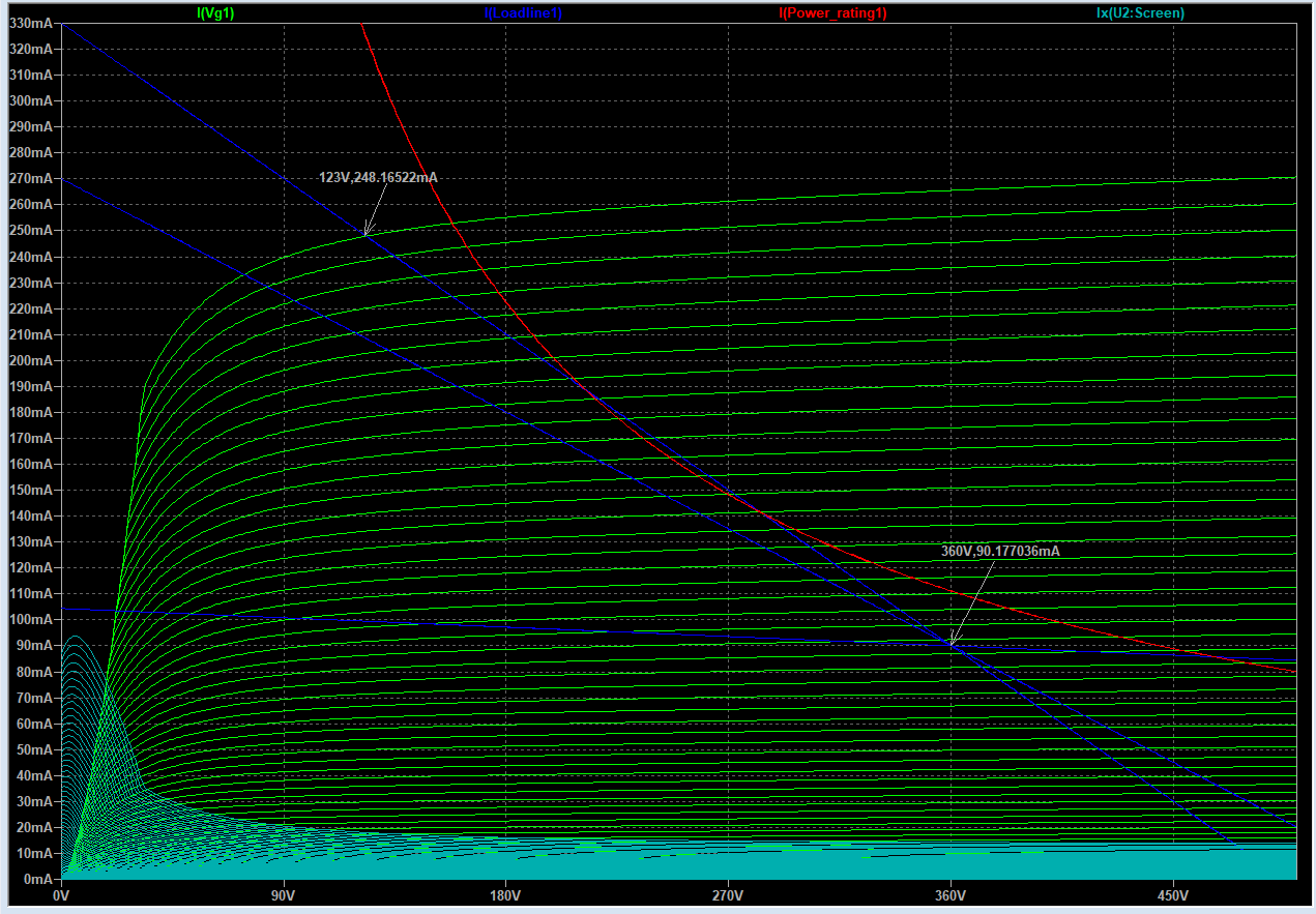 Nella retta con 8 ohm ( quindi 2k ) ho 17,13mA di corrente di griglia sul punto dove la retta di carico si interseca con la Vg=0V.
