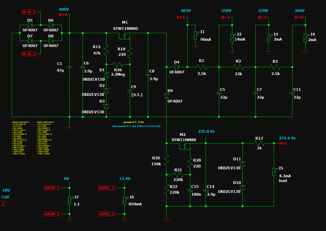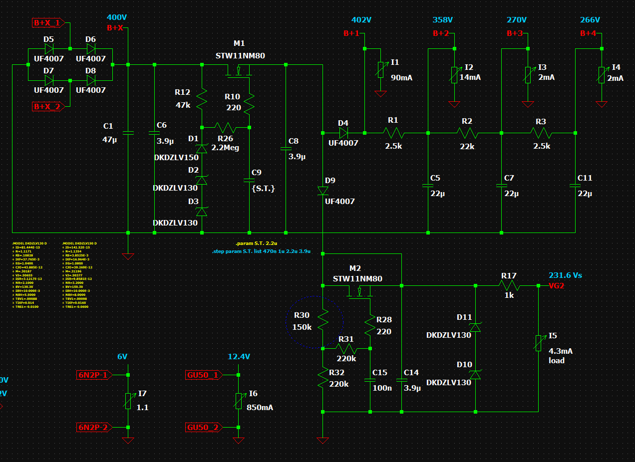 Si, avevo capito. Non ho voluto aumentare la resistenza di griglia schermo di proposito. Volevo che si partisse da un punto dove si vede a quanto possa arrivare la corrente e porvi rimedio. Sarebbe possibile simularla e vederla dai grafici una situazione in cui c'è un palm muting prolungato a media potenza?