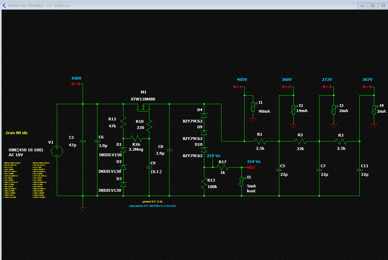 ...a me piace di più il primo metodo. Dal quale, volendo smanettare a certi livelli, lo si potrebbe rendere una specie di V e da tarare entro un minimo ed un massimo di valori per raggiungere facilmente la tensione desiderata di g2 su qualsiasi valvola finale.