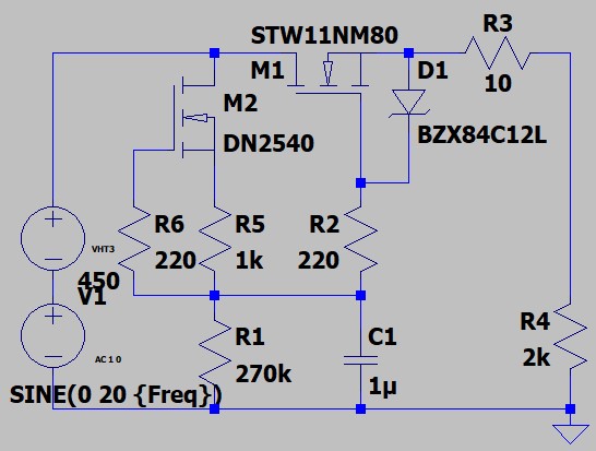 Quindi, dando per buono che ci siano 6 ma, R6 al massimo la puoi portare a 68k per avere piú tensione in uscita dal circuito. Ma anche facendo cosí staremmo sotto i 390V di uscita.