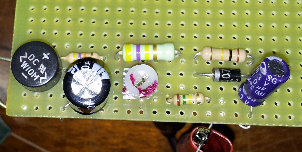 Il circuito originale ha sull'anodica delle finali (nascosta dalla guaina termorestringente) una resistenza da 470Ohm...