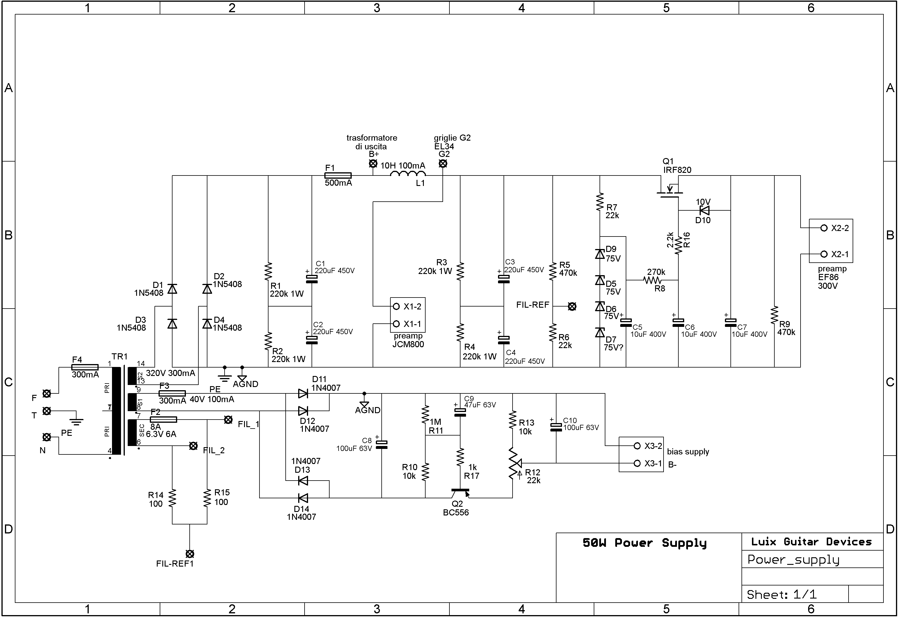 Ho inserito il circuito nell'ampli che sto facendo, un 50W classico con le EL34, l'anodica è quella riportata nel seguente schema: