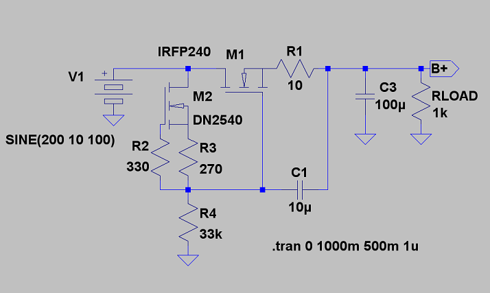 Il grosso limite di quel circuito, è che il partitore butta il ripple a monte del gyrator sul gate del nmosfet, quindi anche l'uscita non sarà ottimamente filtrata.