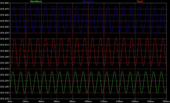 Lo svantaggio del CCS é che mentre gli altri “mangiano” in po’ di tensione per stabilizzare l’uscita, il CCS é fisso. Il che vuol dire che se la tensione di rete cala, e la tensione in ingresso al gyrator cala, potrebbe non fare più il suo lavoro. Quindi andrà sempre dimensionato per dissipare un po’ più potenza (cioé mangiarei più volt, come dicevo prima), ma a favore di una tensione d’uscita sempre uguale (e molto più silenziosa di, ad esempio, una fila di zener, cosa che con LTSpice non si vede), cosa che gli altri col partitore non garantiscono.