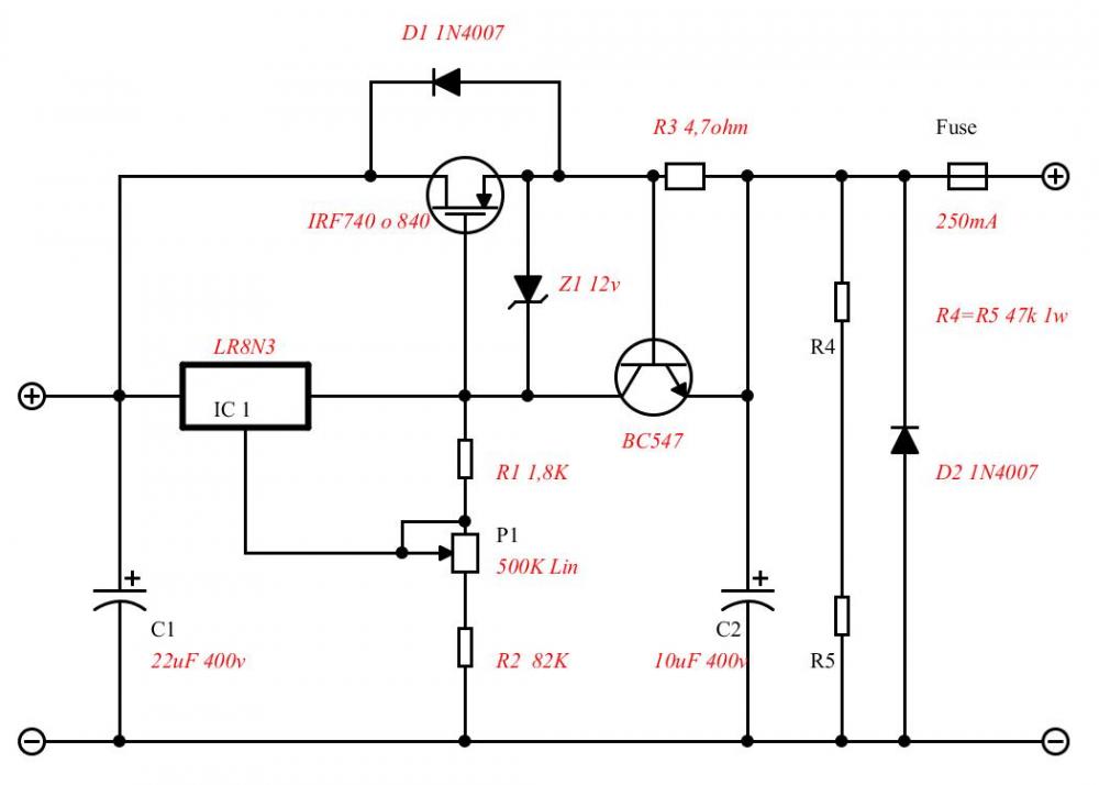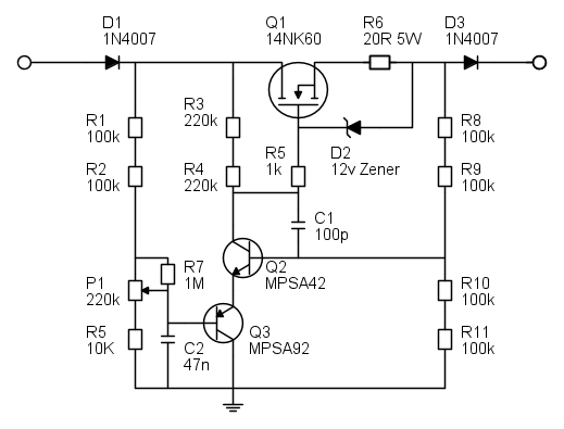 Ho visto anche uno schema amatoriale russo dove usavano semplicemente uno Zener da 10W della tensione desiderata connesso a massa