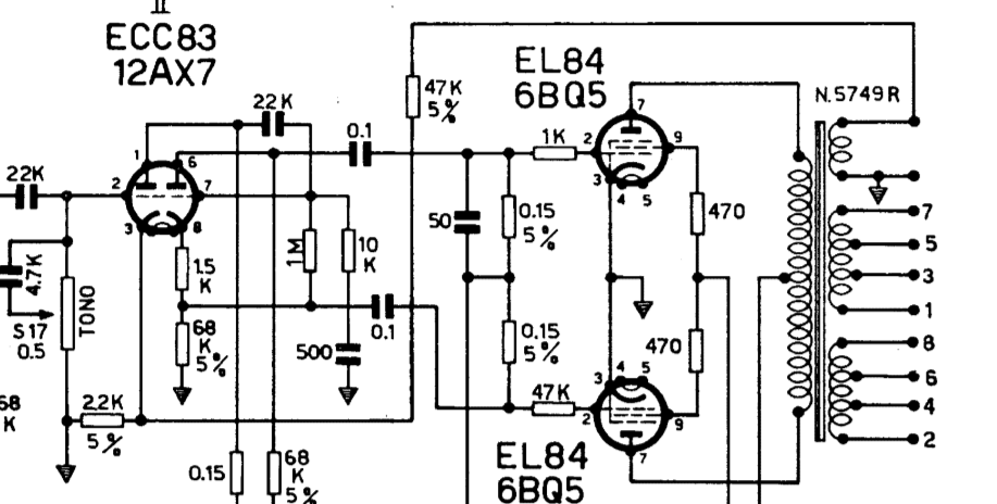 L'importante è che i due catodi vedano la stessa tensione, quindi come dicevo su un 0-4-16 Ohm bisogna mettere a massa il 4 Ohm ed i capi 0 e 16 Ohm vedranno la stessa tensione, sfasata di 180°.