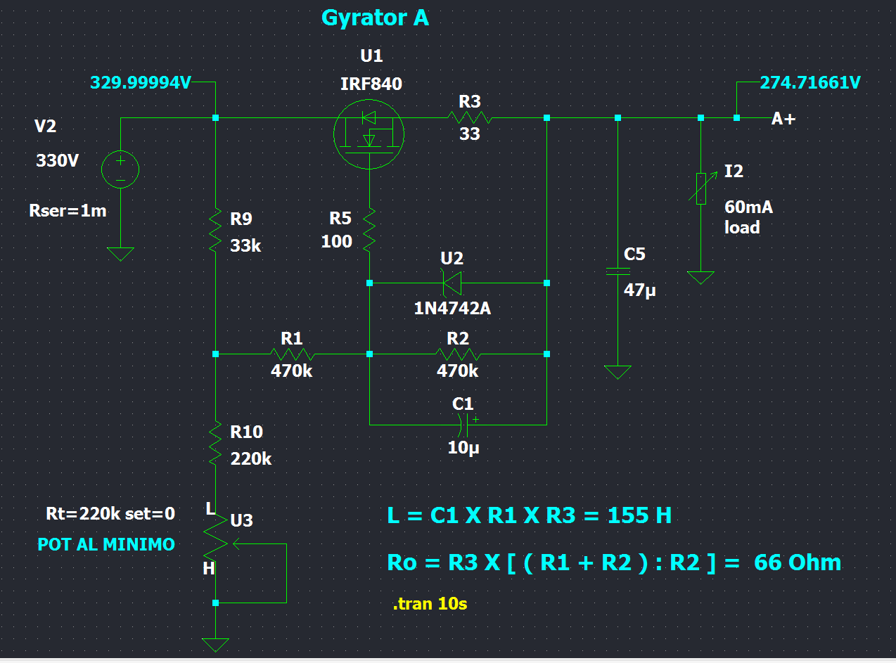 Il fatto che la tensione di uscita fluttui in accordo con la tensione di ingresso, nelle mie intenzioni, non è un problema, lo stesso fa il Gyrator